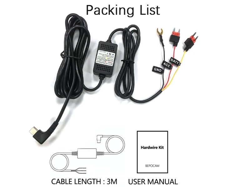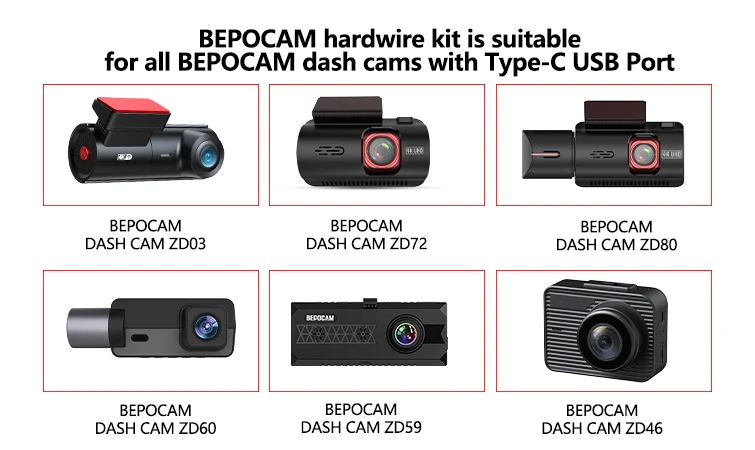 BEPOCAM Parking Surveillance Cable For BEPOCAM ZD03 ZD06 ZD46 ZD47 ZD59 ZD60 ZD72 ZD80 Dashcam Hardwire Kit 24H Parking Monito