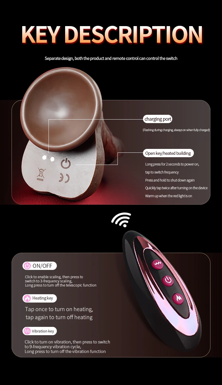 Function: heating, vibration, rocking, masturbation, flirting, sliding foreskin, testicles.silicone, soft and comfortable, real skin, easy to clean