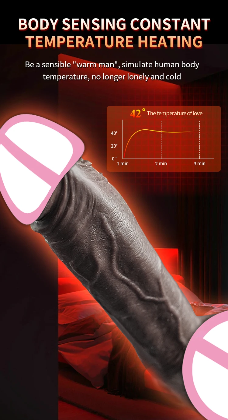 Step 4 : If you want to heat (note: the heating part is at the top of the pseudopenis), you need to press the heating button,which takes 7-10 minutes or more. If used in colder weather, please heat it for a longer time to achieve the desired heating effect, the maximum temperature is 42 degrees.Long press the heating key to close the heating