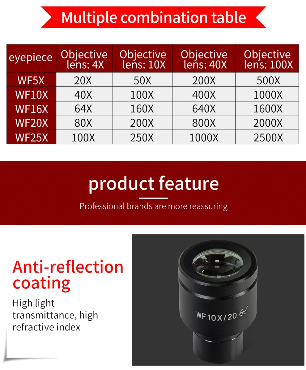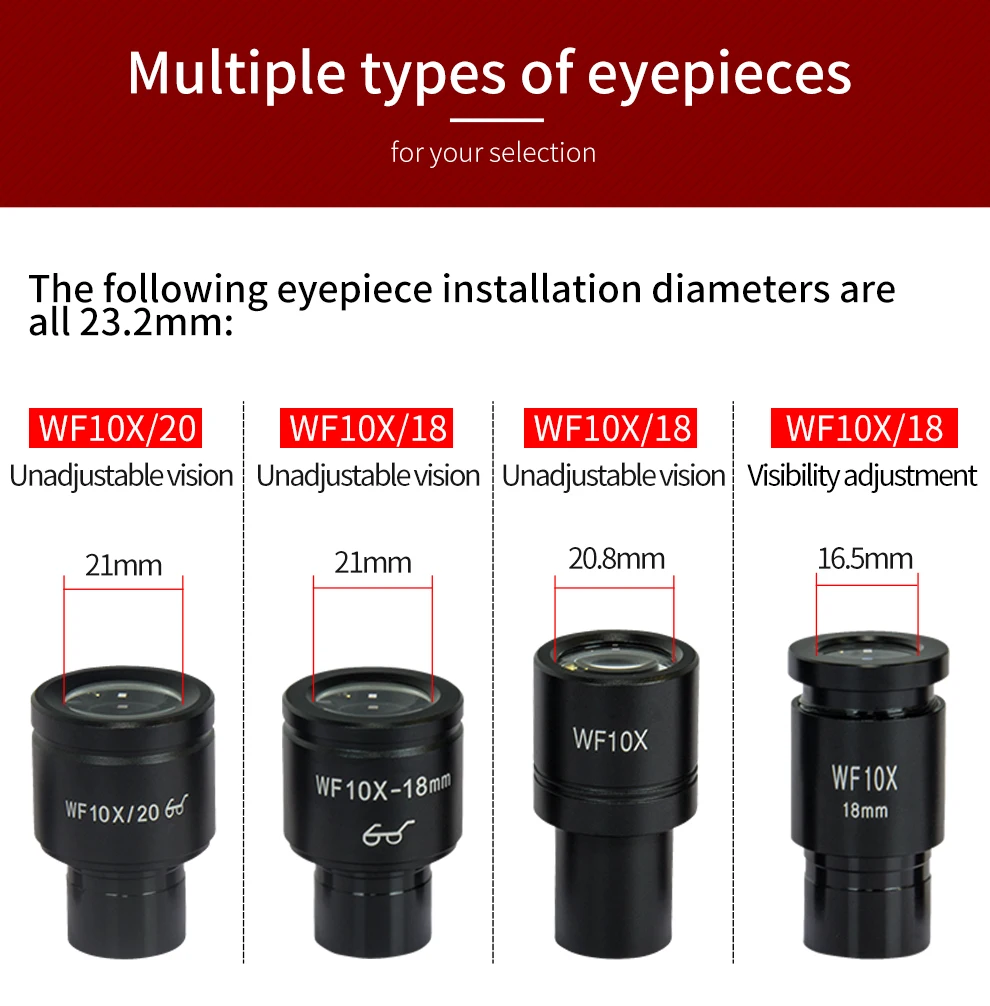 Bioscopic microscope eyepiece, Wf5X, Wf10X, Wf15X, Wf16X, Wf20X, Wf25, installation size 23.2 millimeters.