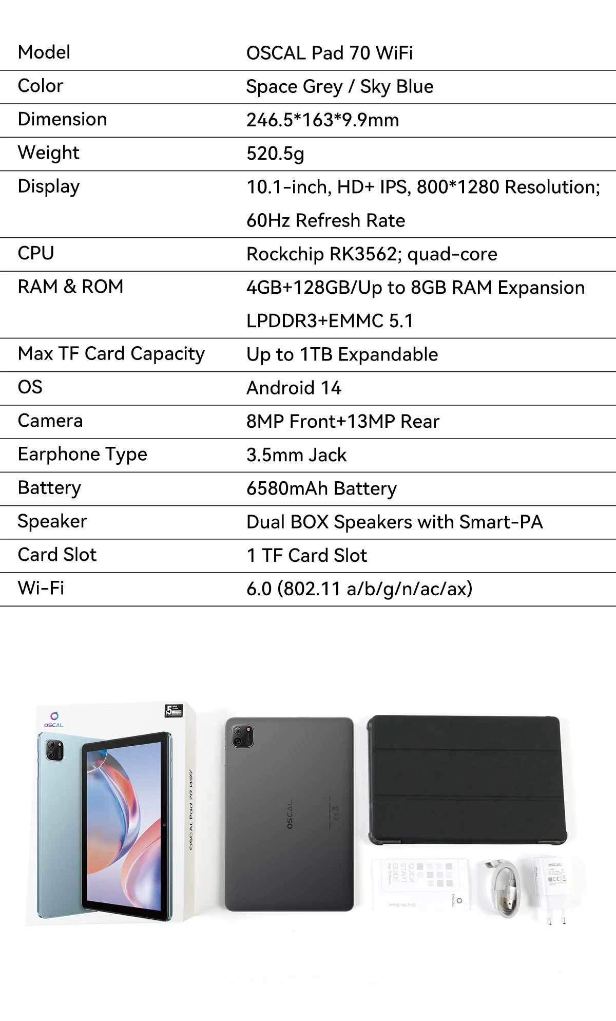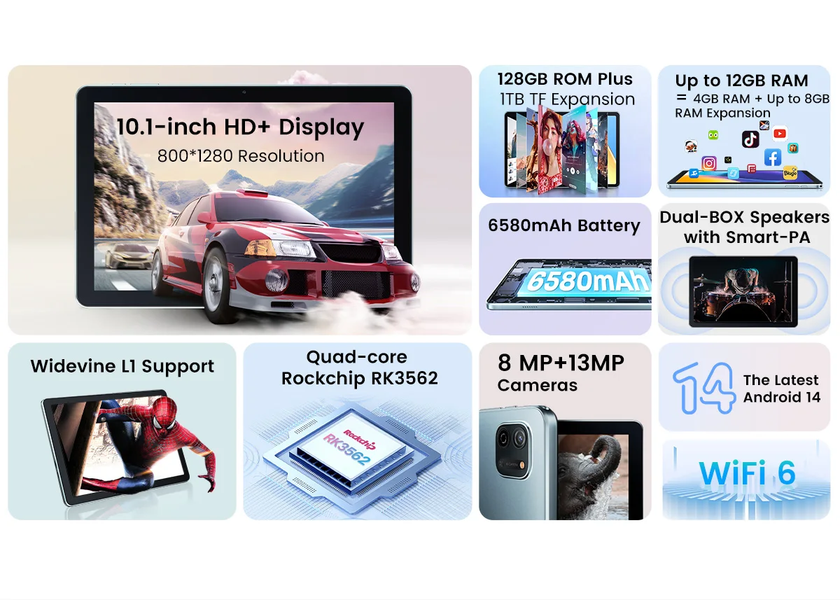 Blackview OSCAL Pad 70 WIFI Tablet Android 14 10.1'' FHD+ Display 12GB(4+8) RAM 128GB ROM 6580mAh Battery 13MP Camera WIFI