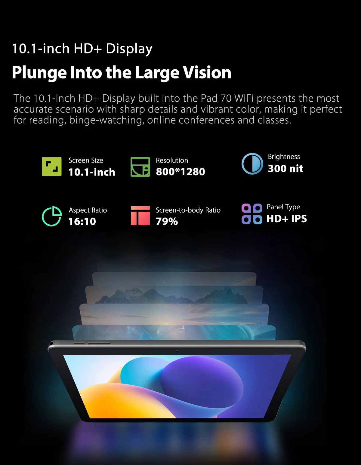 Screen: 10.1-inch HD+ IPS 1280*800 Display