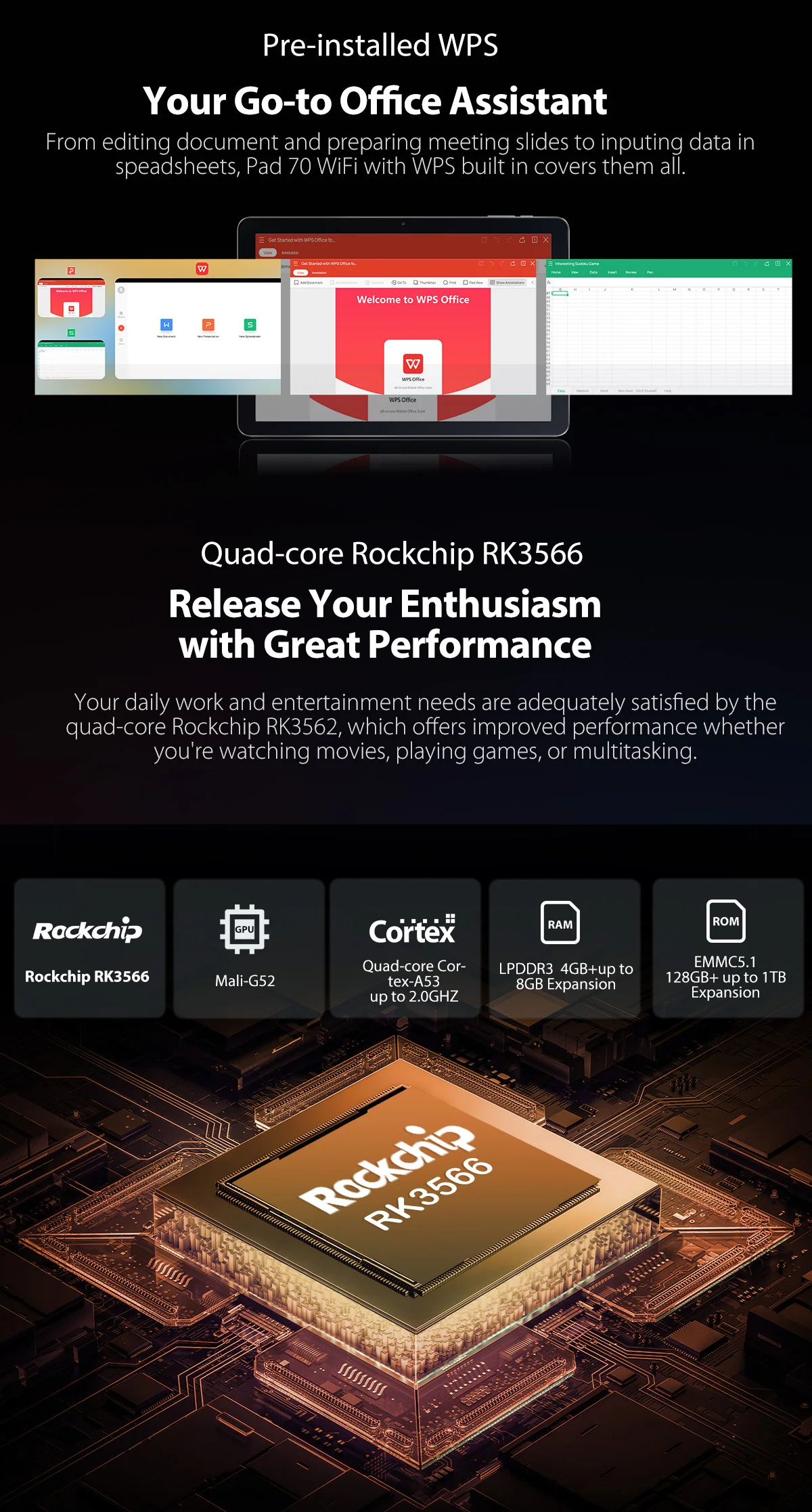 CPU: Quad-core Cortex-A53 up to 2.0GHz,Mali-G52 1-Core-2EE