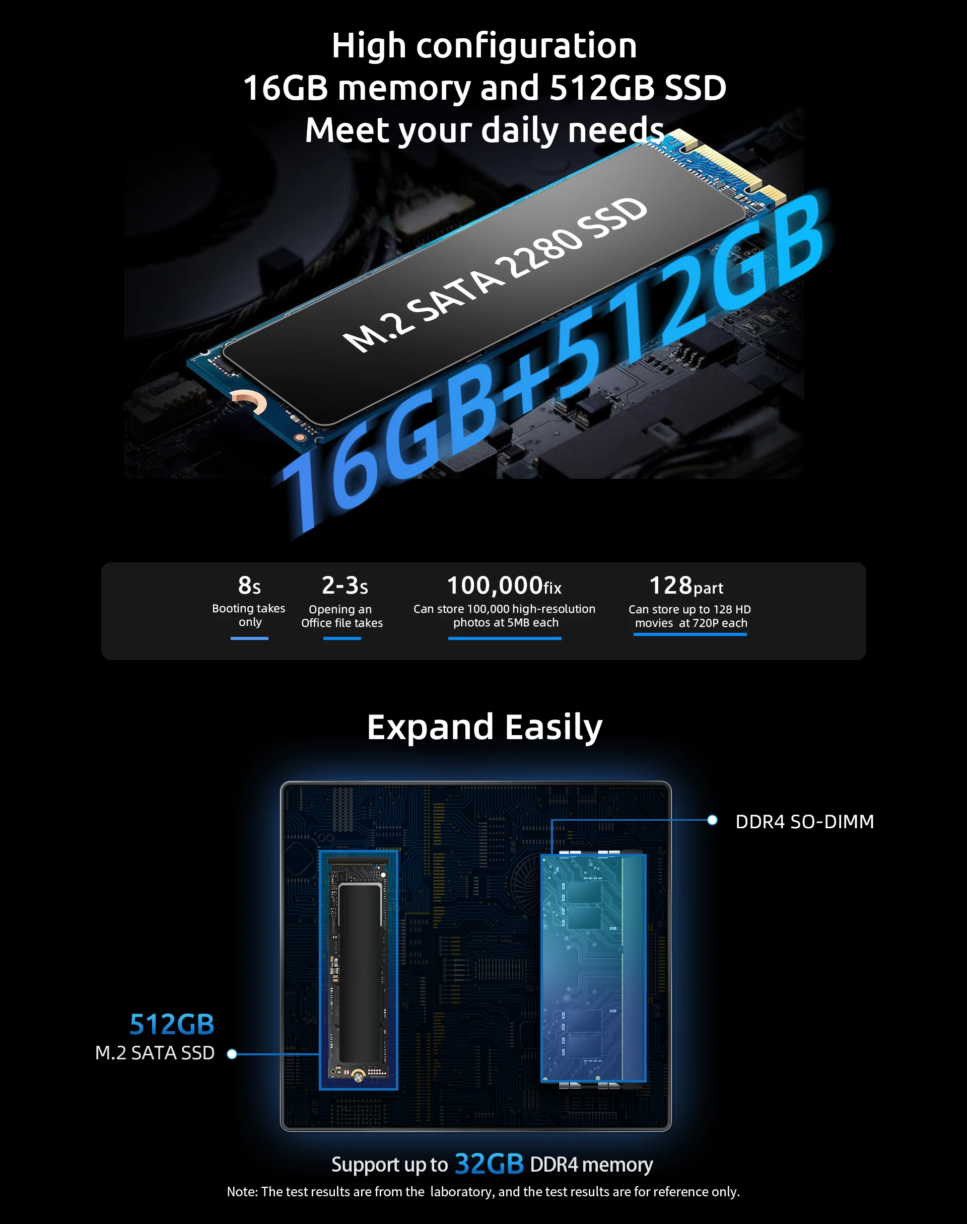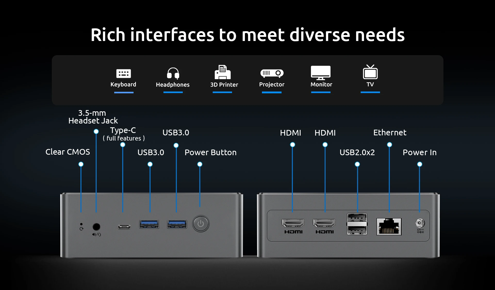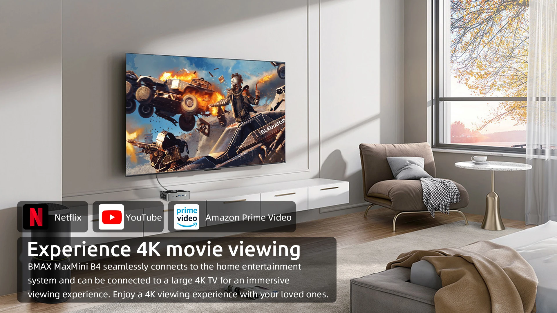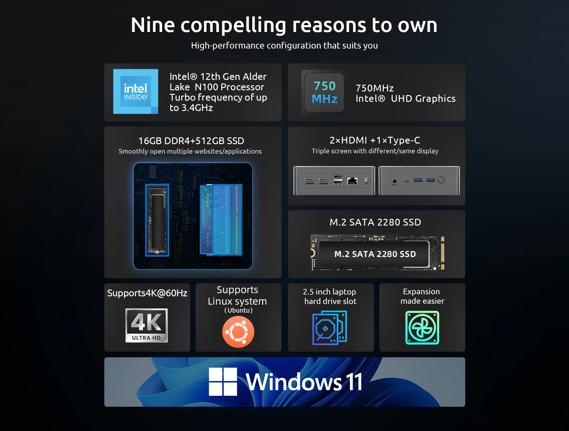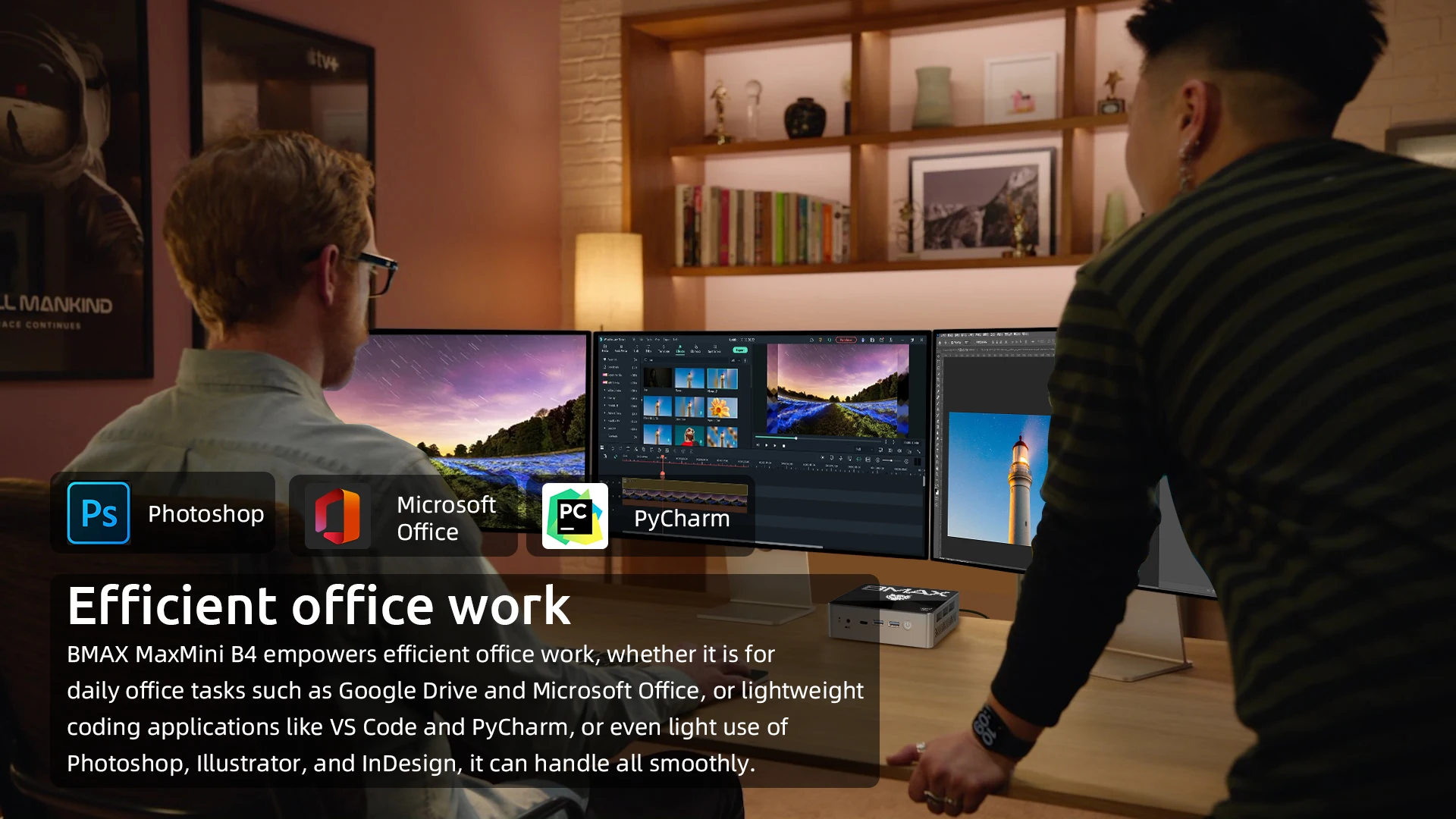 BMAX B4 Plus Mini PC Windows 11 PC Intel N100 16GB DDR4 512GB SSD 2*HDMI 1*Type-C Supports 4K@60Hz 750MHz Intel UHD Graphics