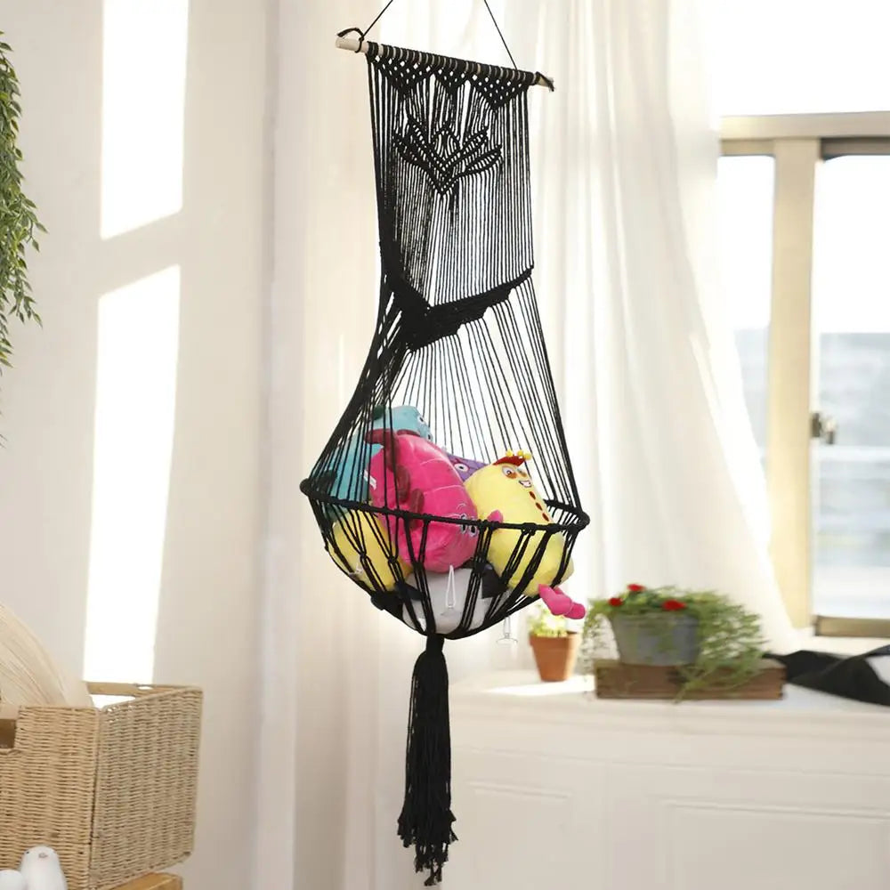 4.Easy to Use: Effortlessly create a restful retreat for your feline friend with this macrame cat hammock. It's versatile enough for sleeping, napping, playing and can also hold toys, making it a good storage solution