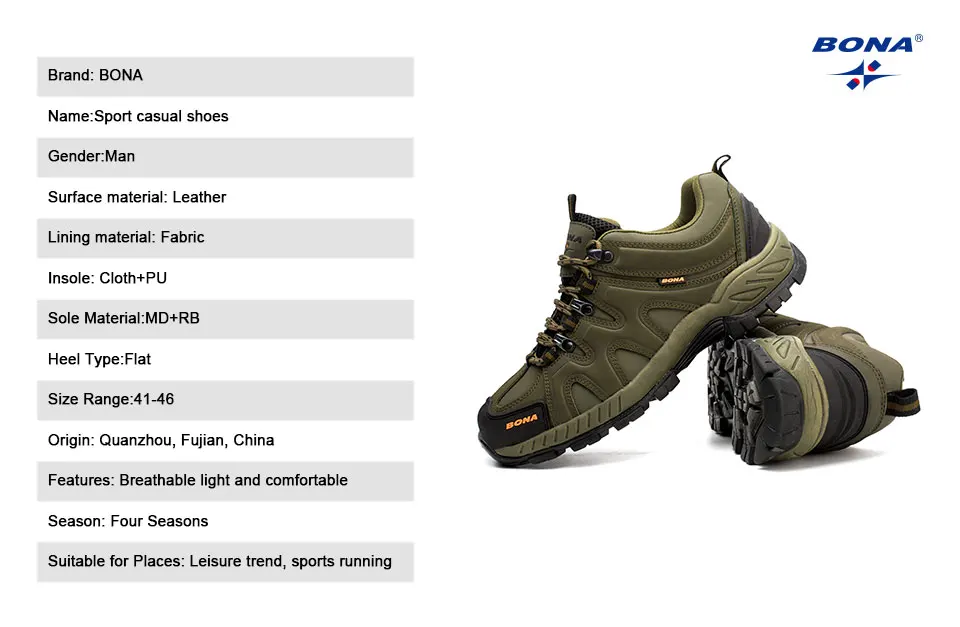 BONA New Arrival Classics Style Men Hiking Shoes Lace Up Men Sport Shoes Outdoor Jogging Trekking Sneakers 34399