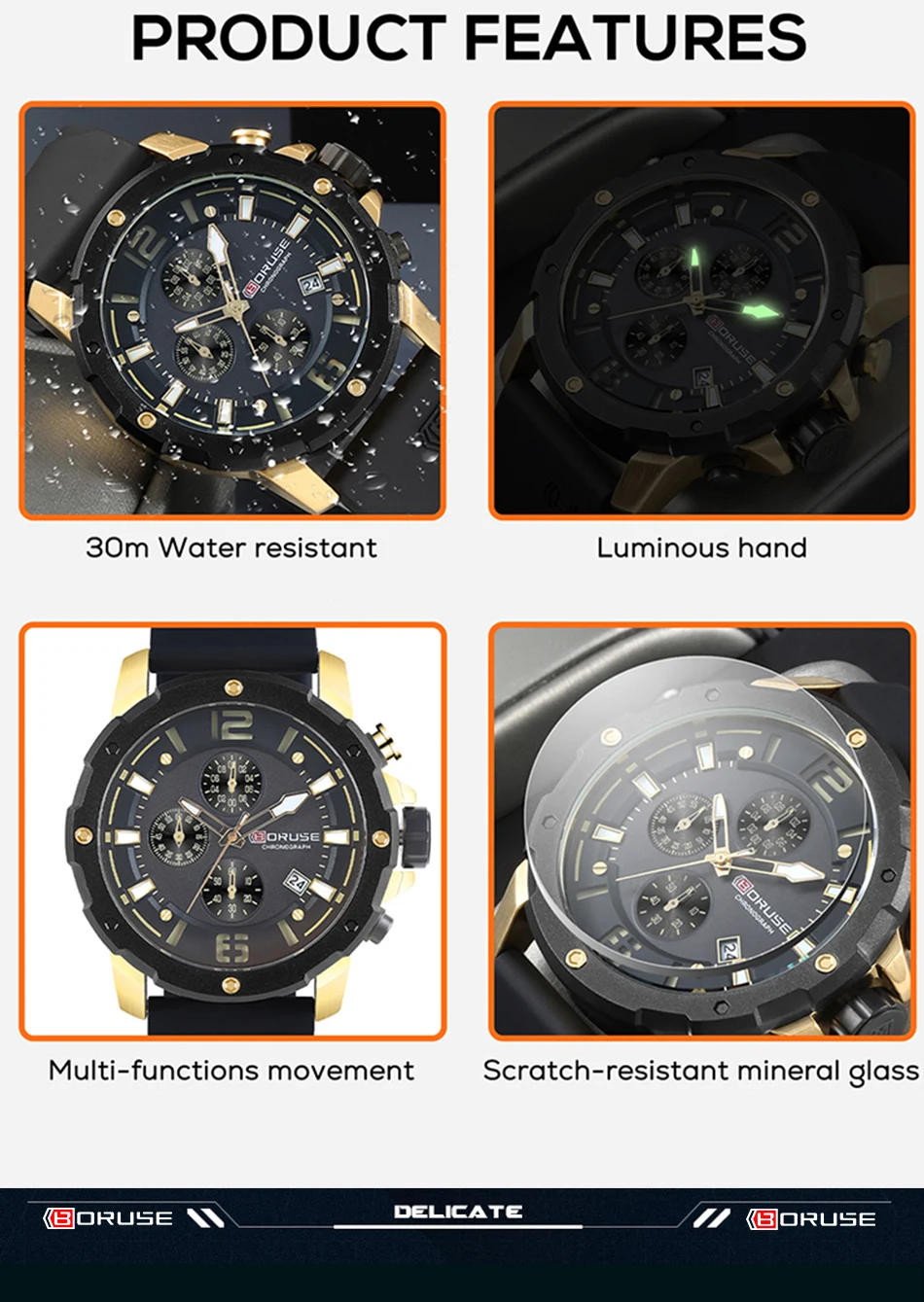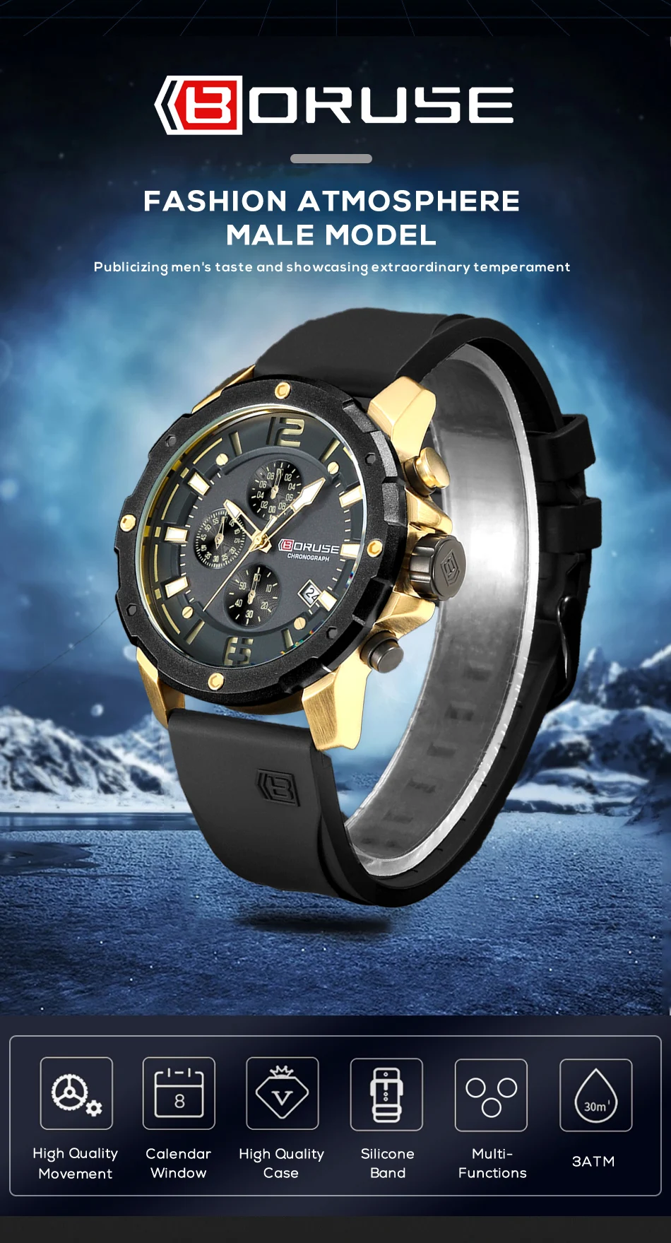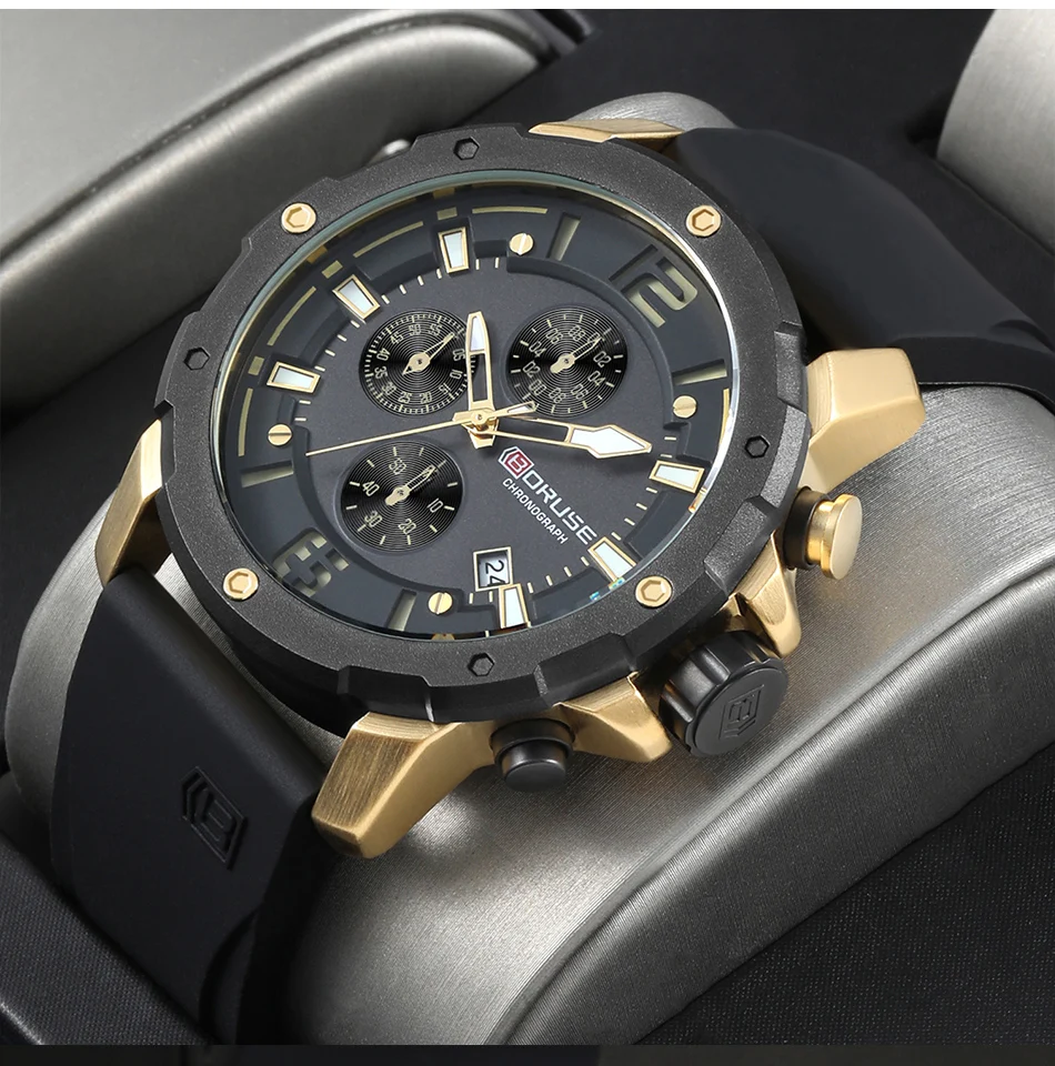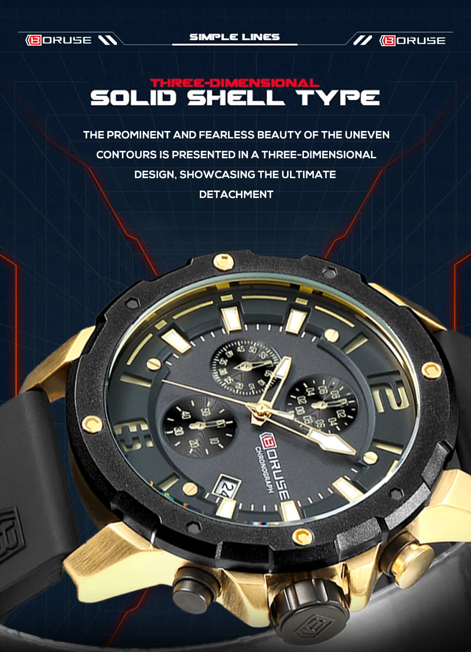 BORUSE Watches for Mens Luxury Silicone Sport Wristwatch Male Business Quartz Watches Clock Waterproof Watch Relogio Masculino