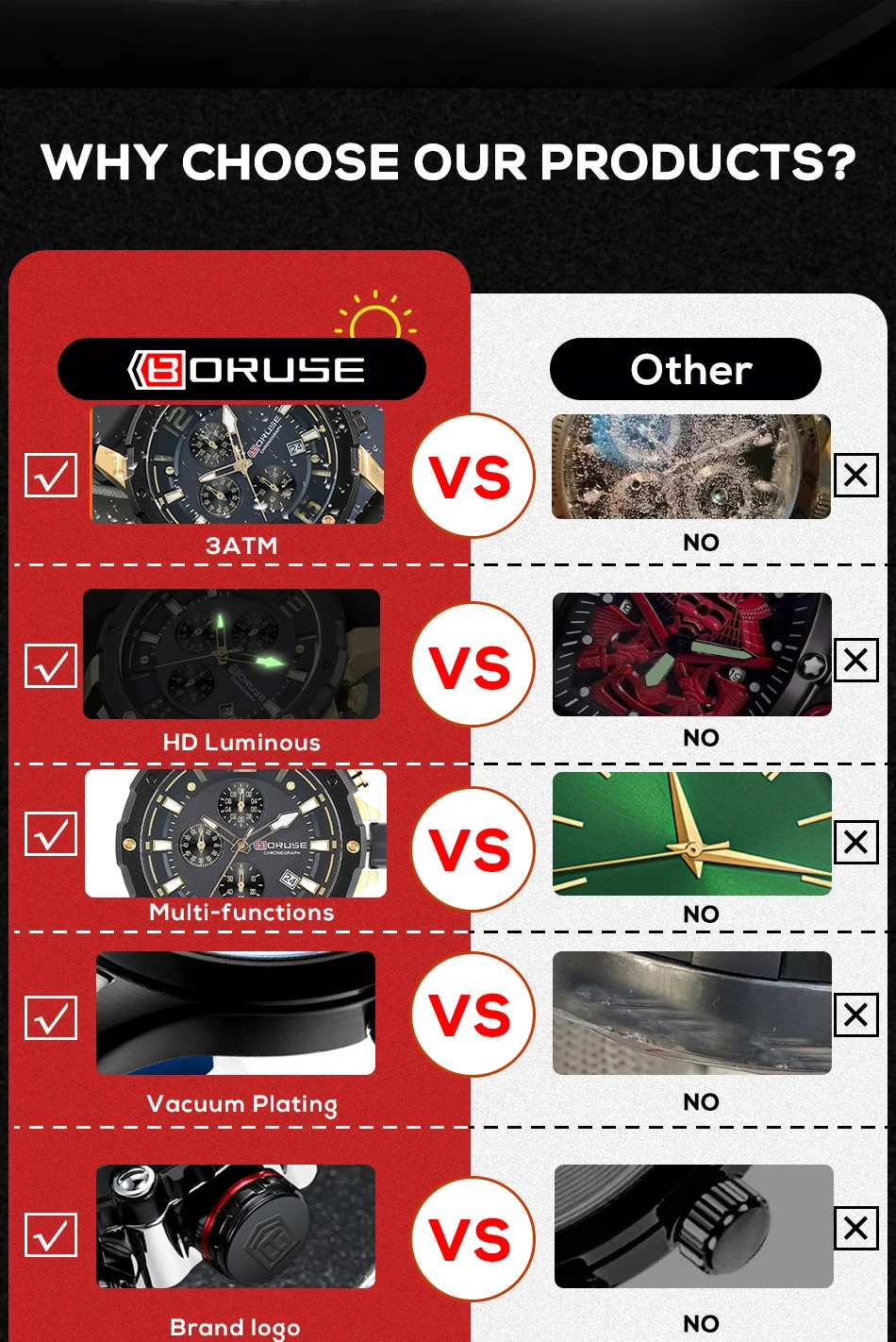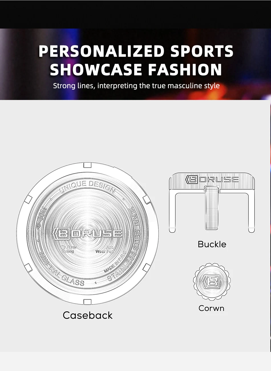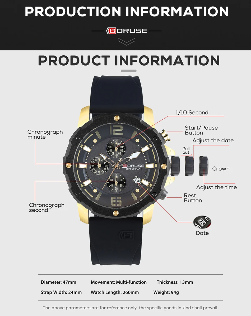 BORUSE Watches for Mens Luxury Silicone Sport Wristwatch Male Business Quartz Watches Clock Waterproof Watch Relogio Masculino