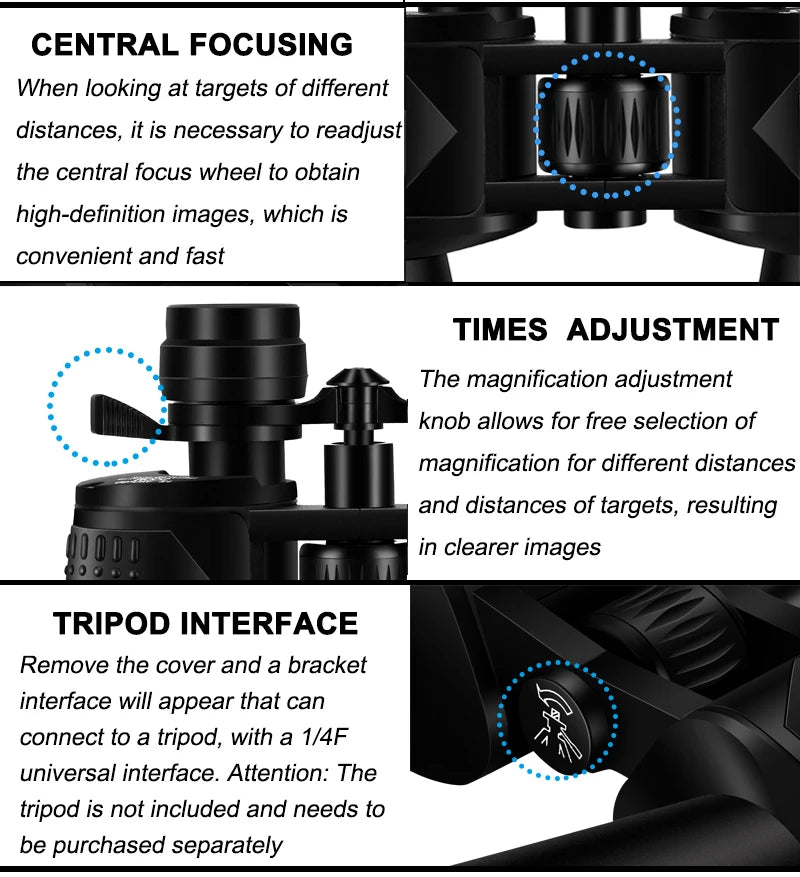BORWOLF 15-450X60 Binoculars Telescope HD Light Night Vision Bak4 Prism Professional Zoom Powerful for Hunting Bird Watching