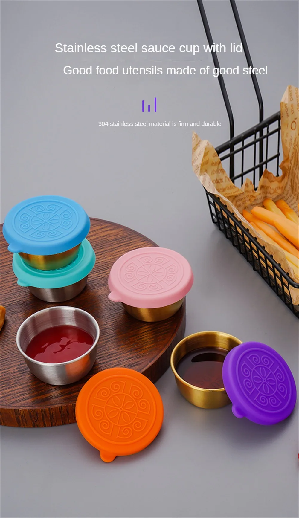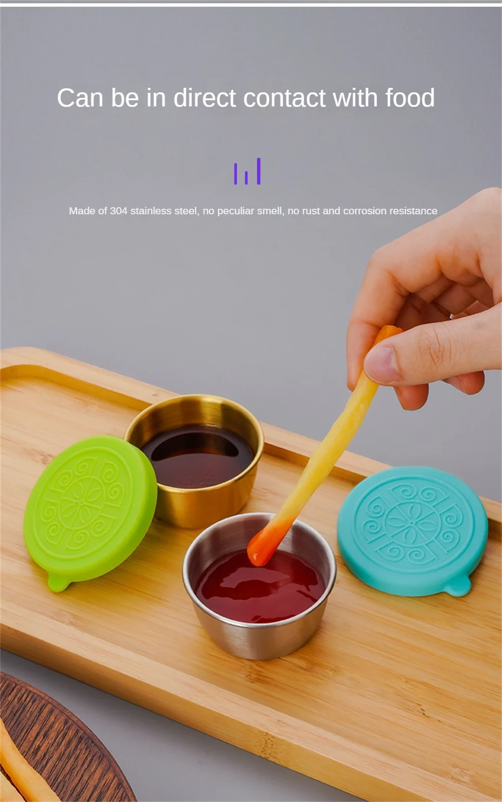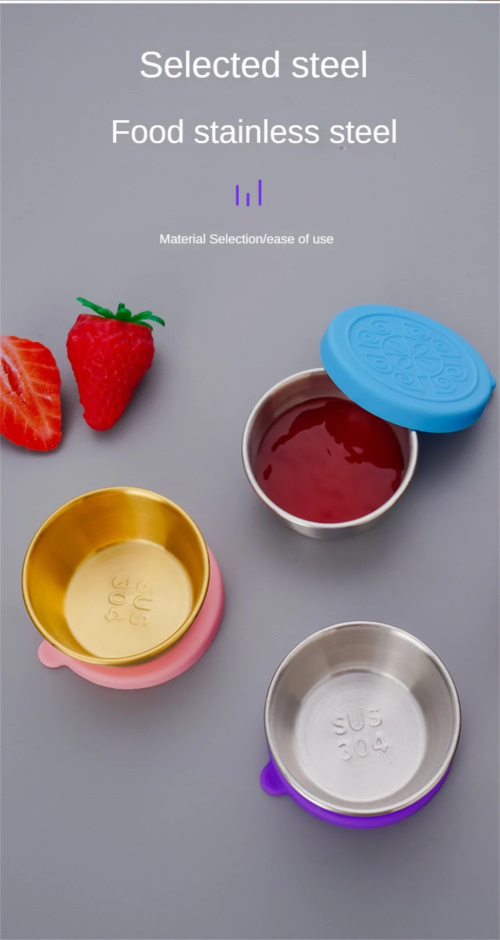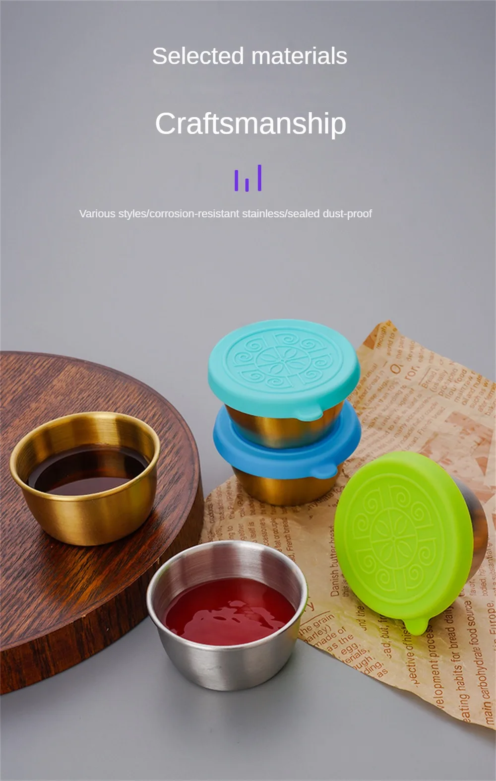 Bowl Mini Dipping Plate With Lid Outdoor Camping Tableware 1pcs Stainless Steel Sauce Cup Leak-Proof Tomato Mustard Sauce