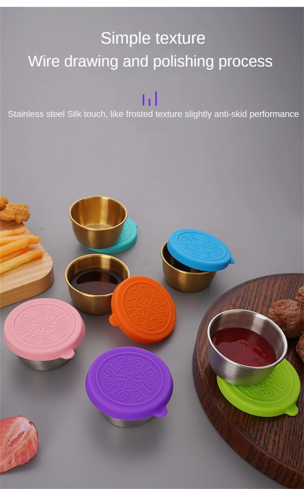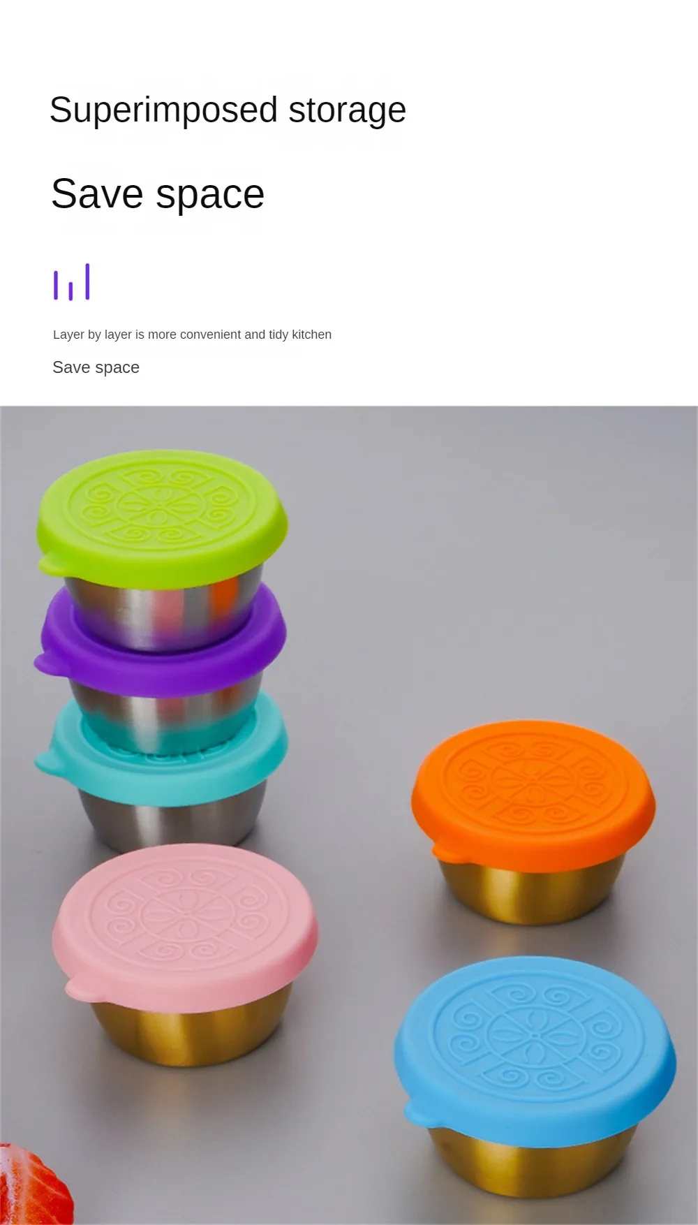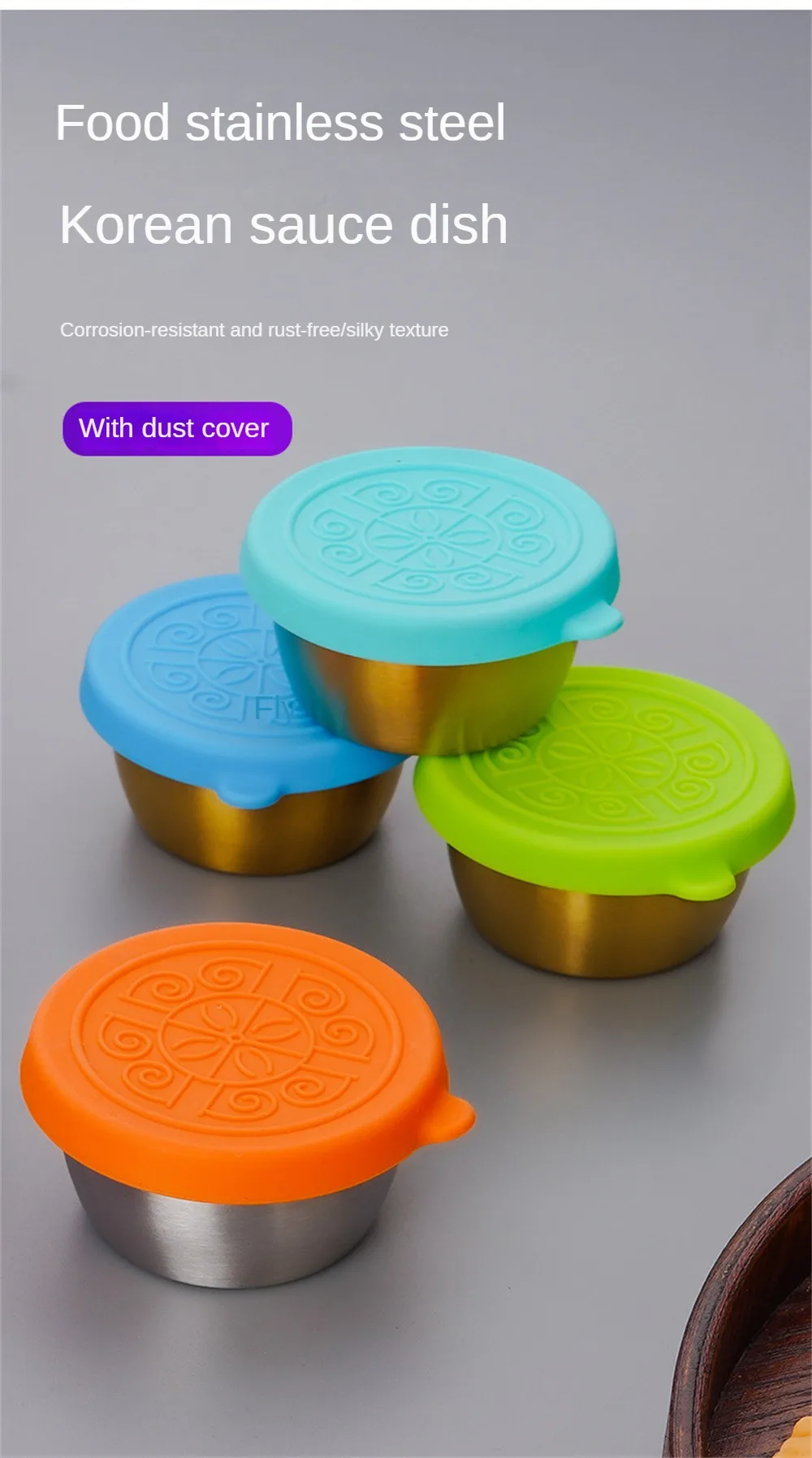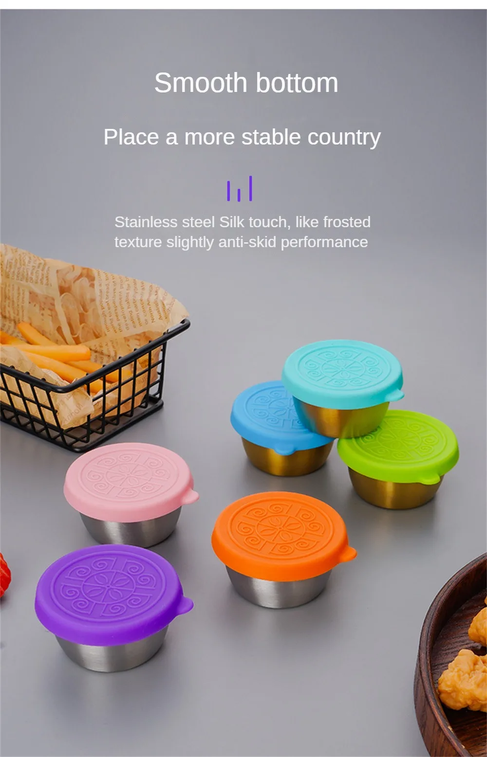 Bowl Mini Dipping Plate With Lid Outdoor Camping Tableware 1pcs Stainless Steel Sauce Cup Leak-Proof Tomato Mustard Sauce