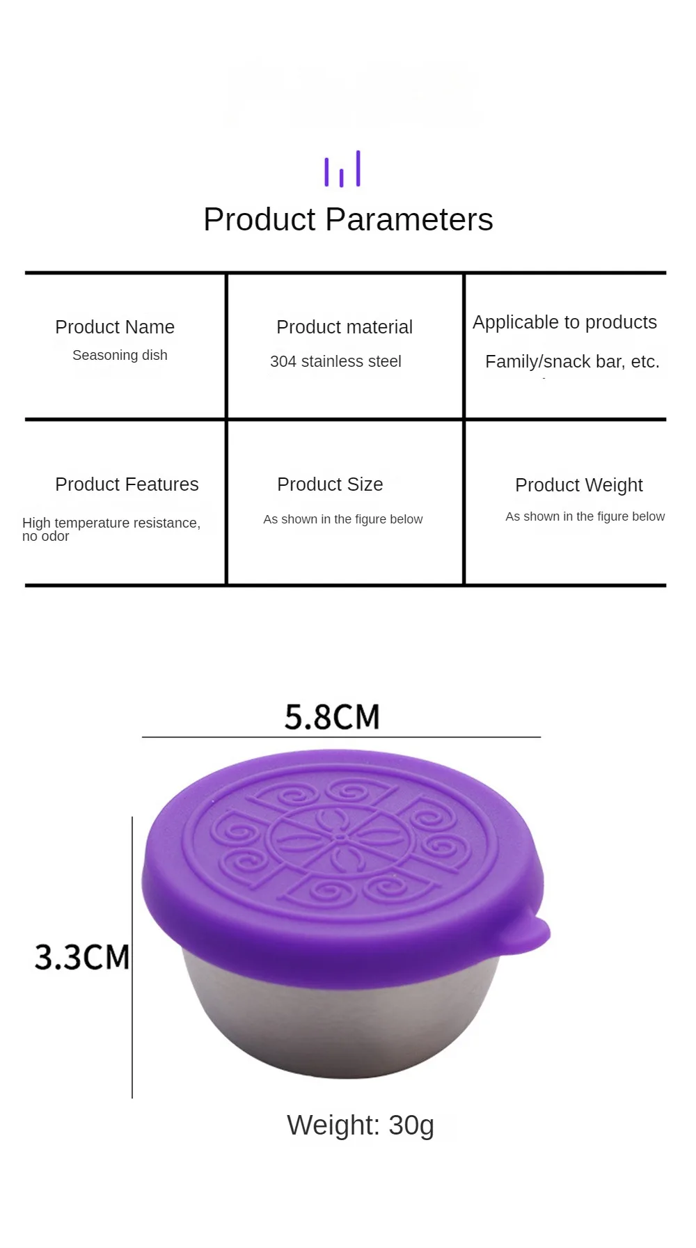 3. Made of 304 stainless steel, this condiment container is reusable, helping to reduce the use of many disposable condiment cups. Reduce waste, protect the environment, and save money.