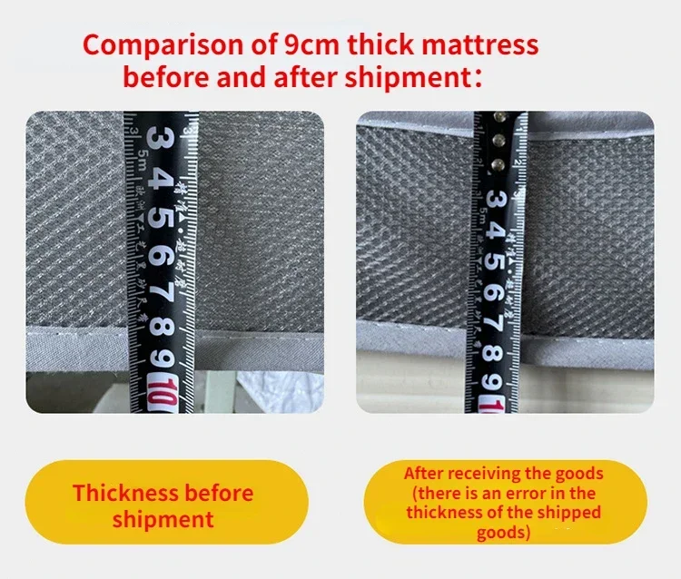 The mattress is transported by express delivery instead of logistics. Due to the requirement of the courier company to empty fold and pack the mattress, there may be some thickness error when the buyer receives the goods. This issue is unavoidable for all mattress sellers.