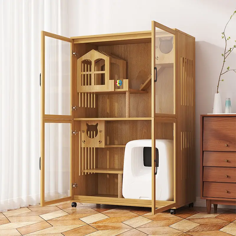 Luxury cat house made of high quality solid wood, welcome to consult. The price is favorable. We have cheap and safe sea transportation.