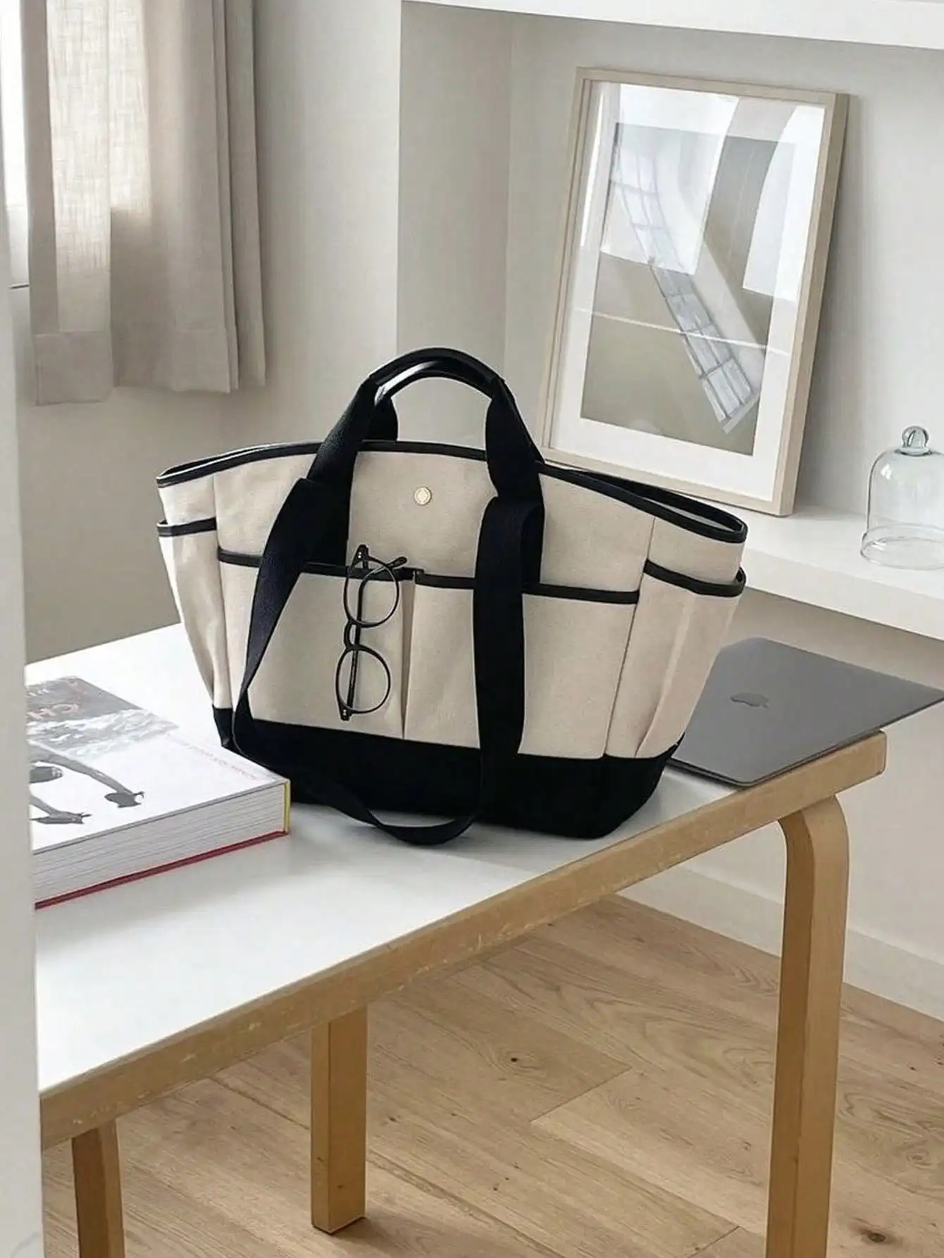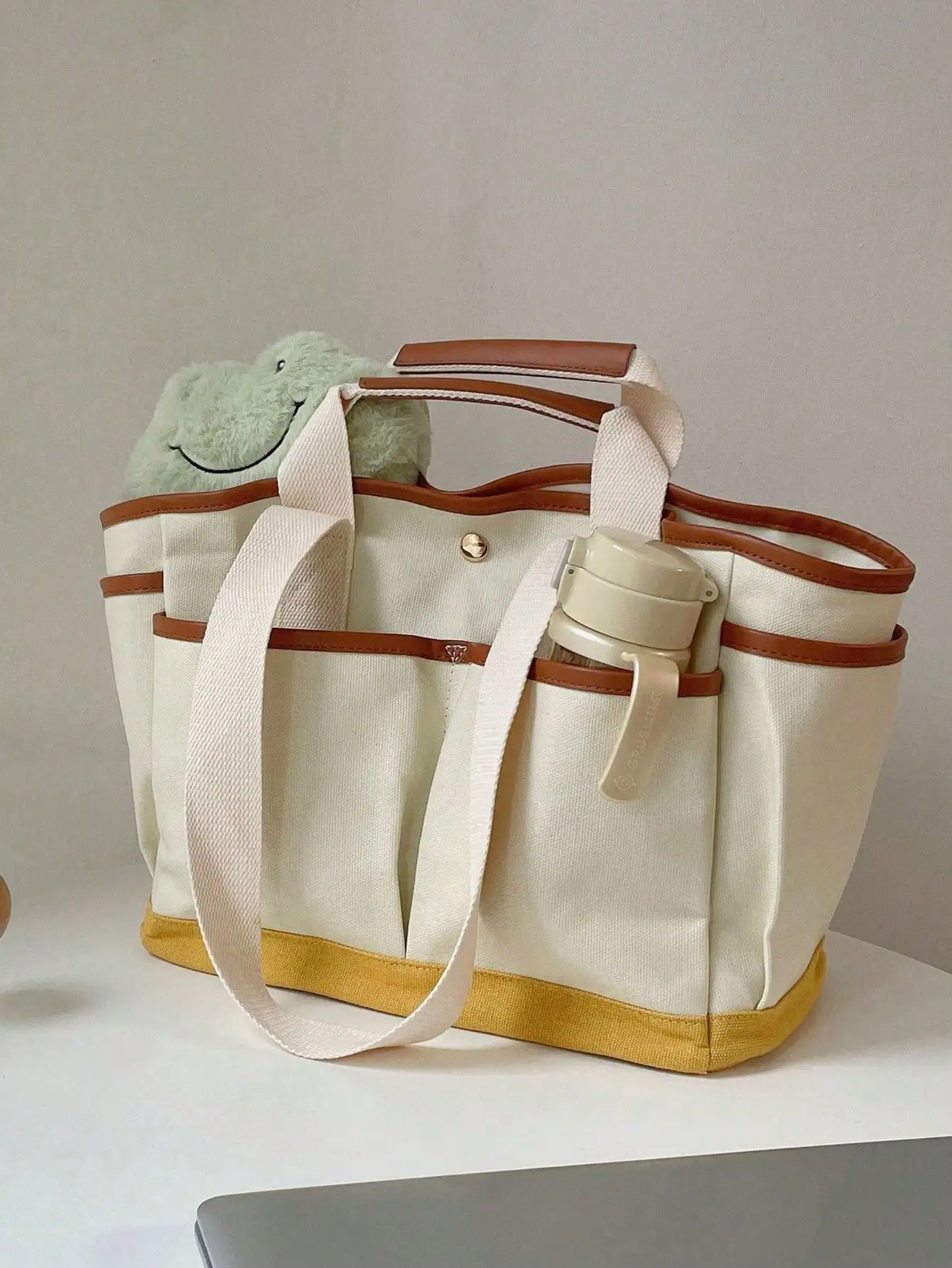 Canvas multi pocket tote bag, crossbody bag, mommy bag, large capacity crossbody mother and baby bag, light mommy bag