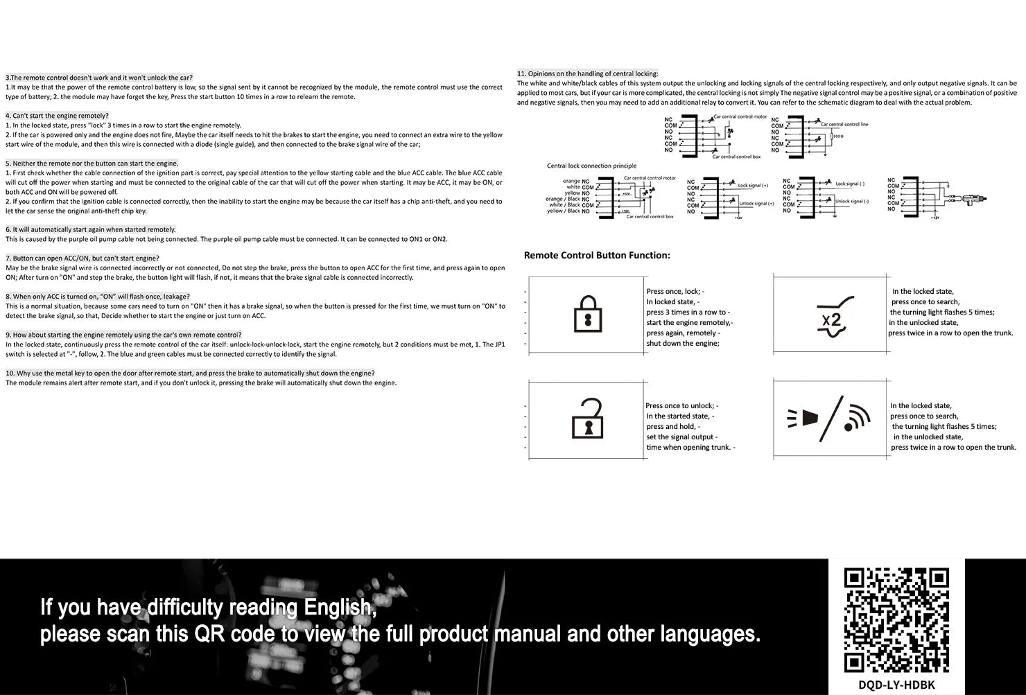 1. lock/unlock/remote start by remote key.