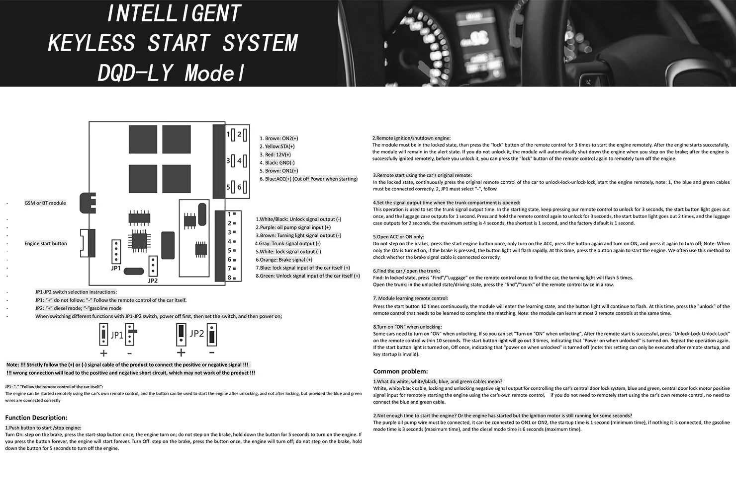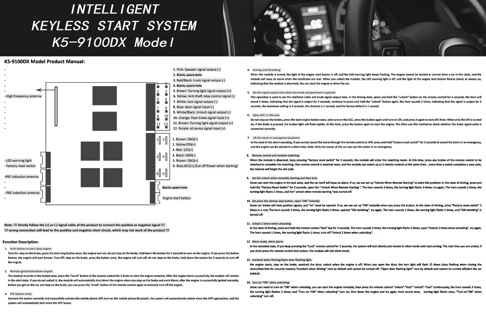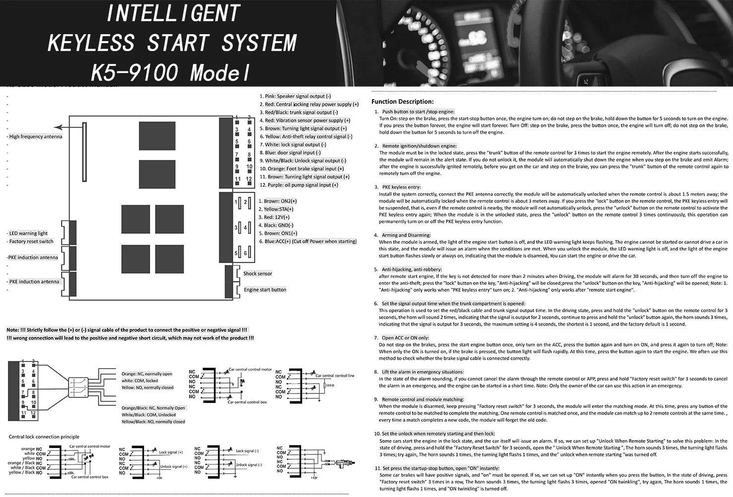 2. Installing this system requires some professional automotive electronics knowledge. Please read the product manual carefully. Please pay attention to output signal cables must be connected to the correct signal according to the "+" or "-" on the product manual. Wrong connections may cause short circuits or burnout of the product.