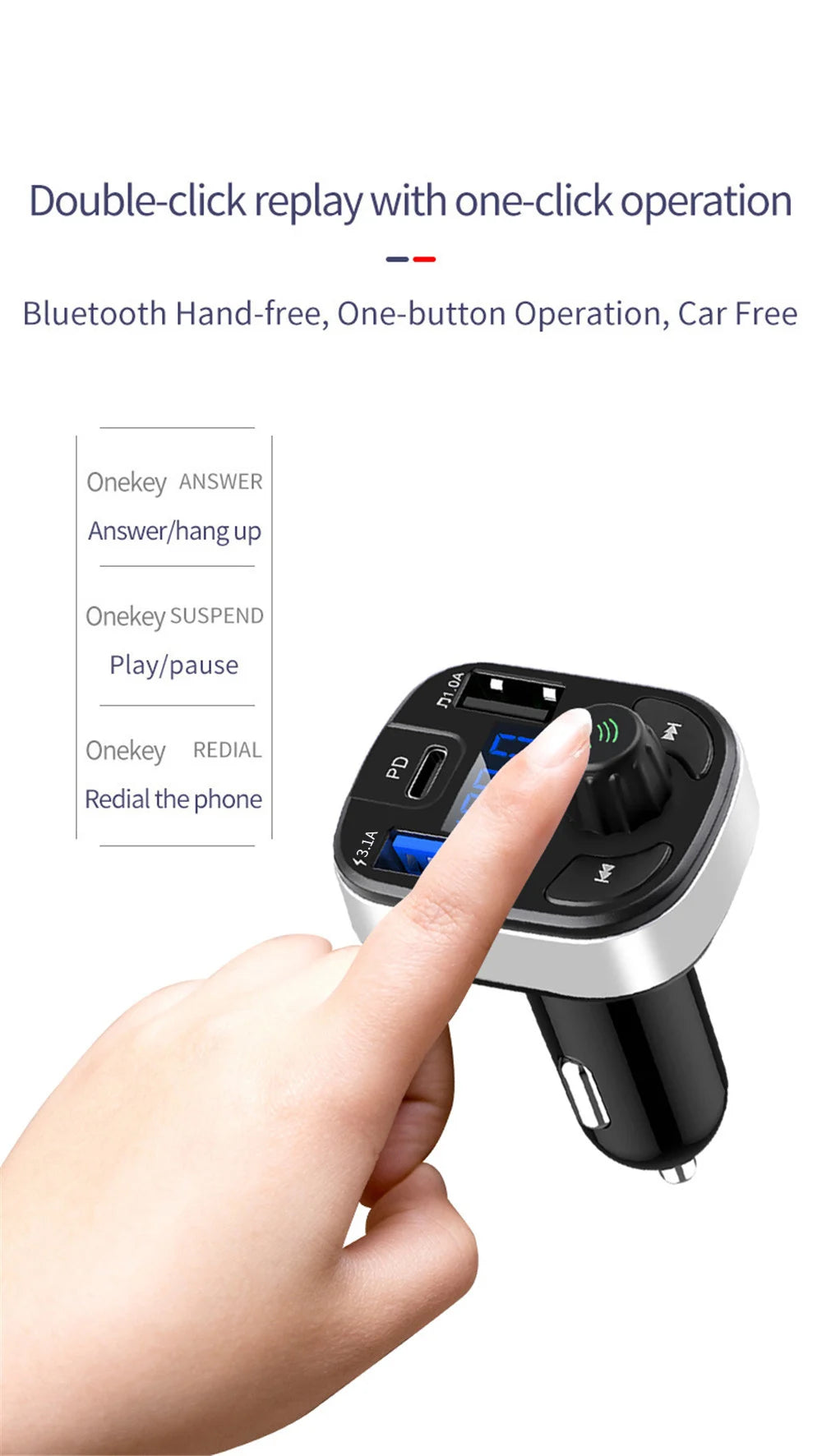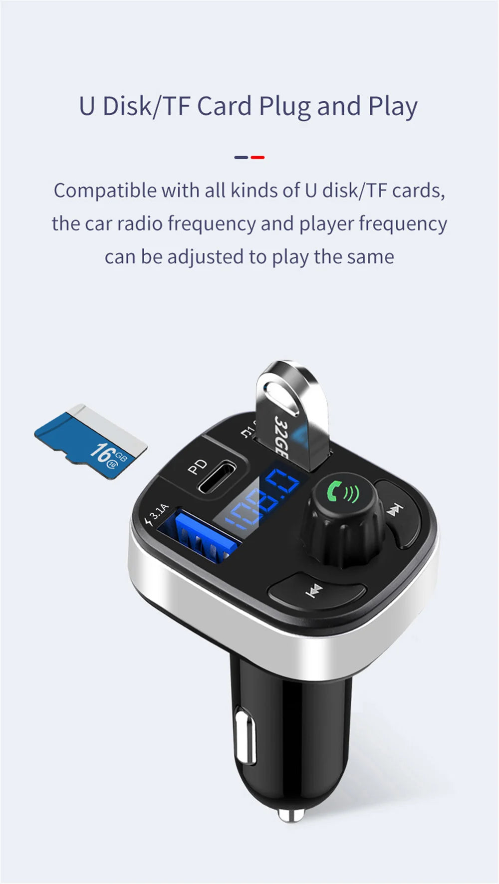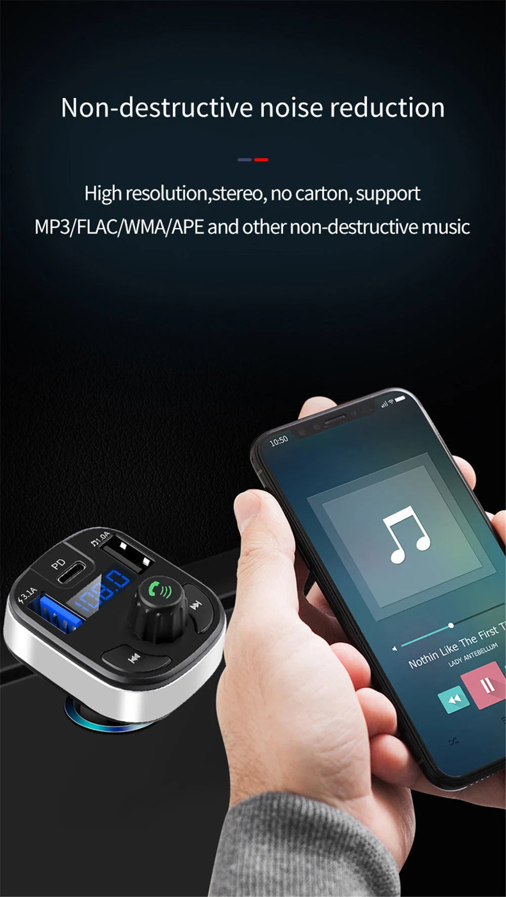 Car Bluetooth 5.0 FM Transmitter Dual USB PD Type C Fast Charge Car Charger Bluetooth Microphone Handsfree Car FM Modulator
