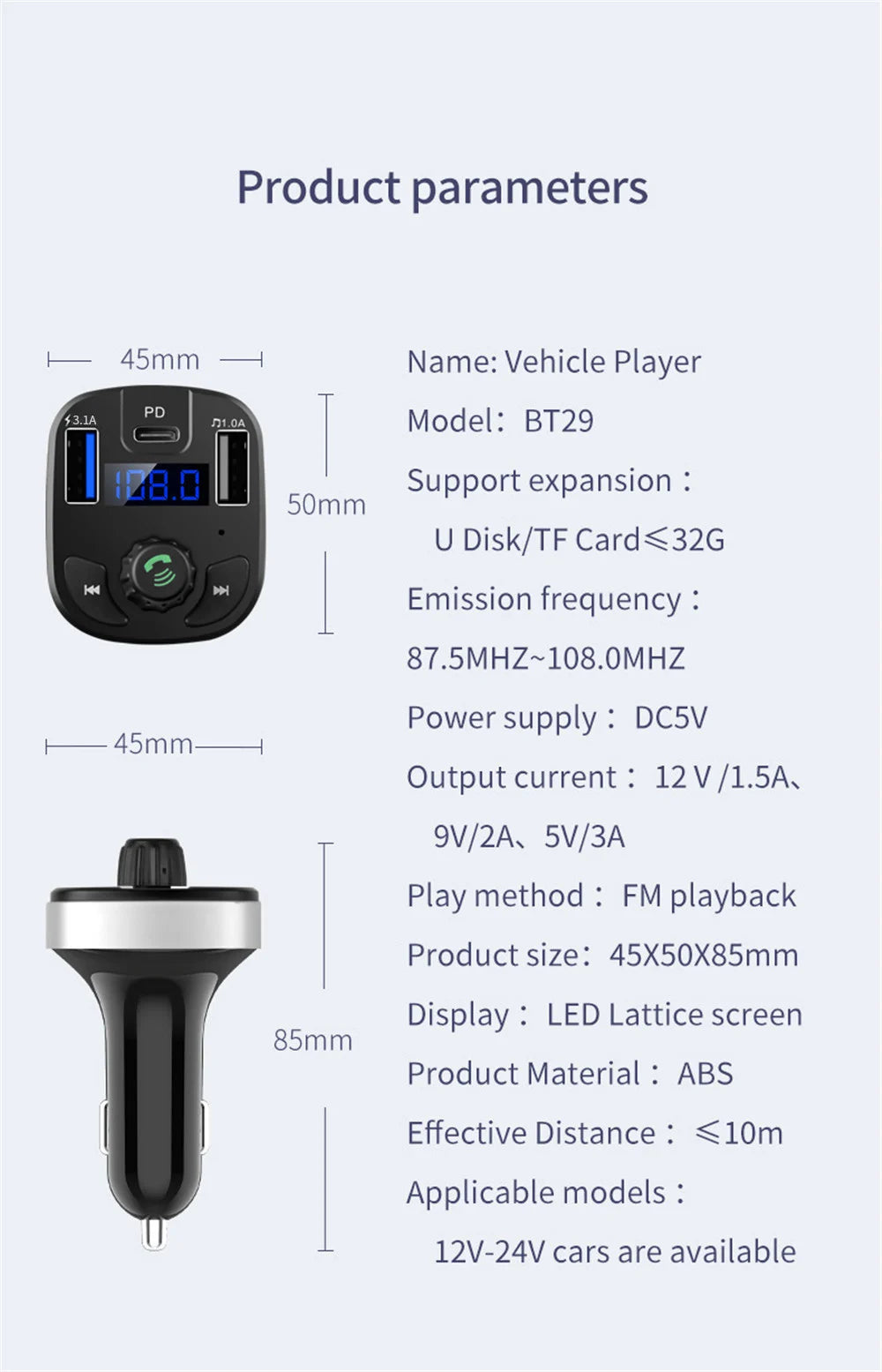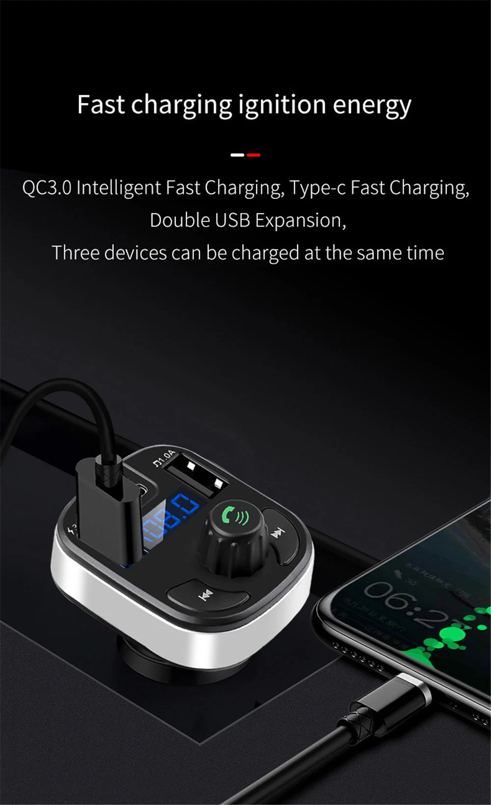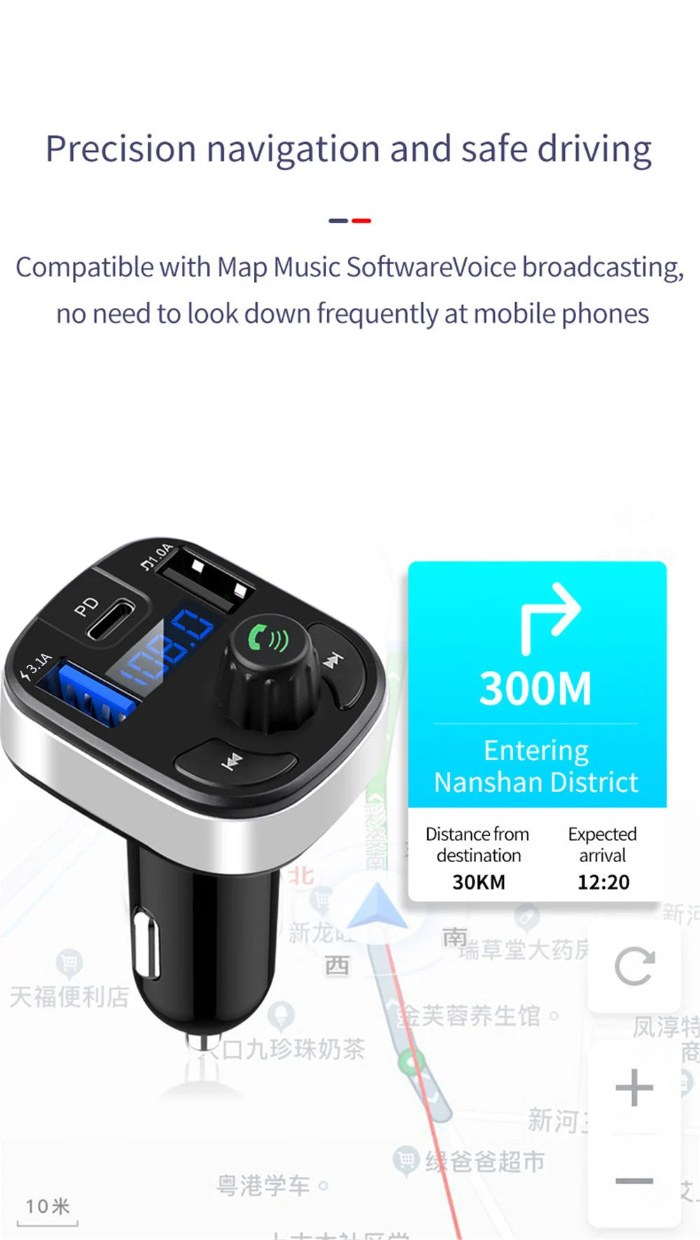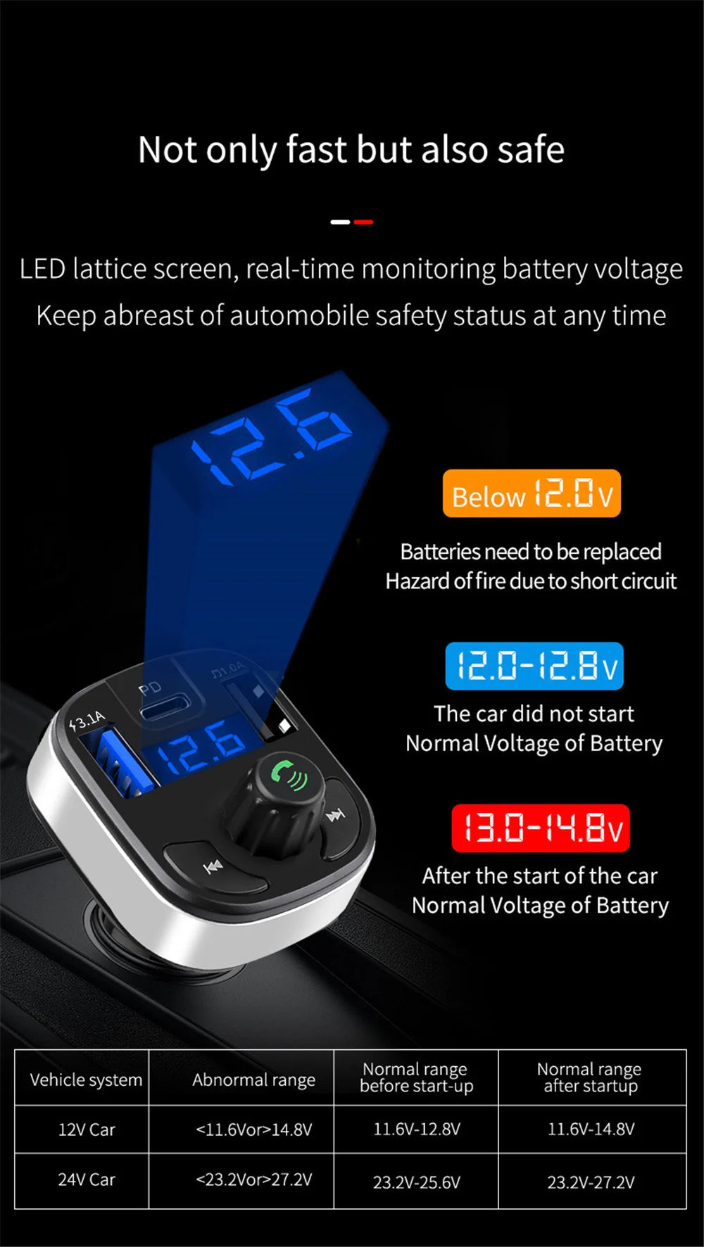 Car Bluetooth 5.0 FM Transmitter Dual USB PD Type C Fast Charge Car Charger Bluetooth Microphone Handsfree Car FM Modulator