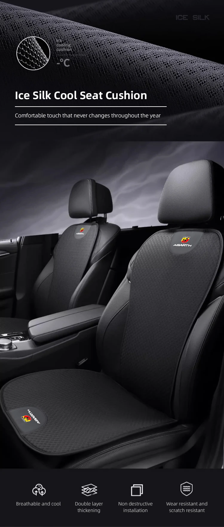 Car Ice Silk Seat Cushion Seat Covers For Fiat 500 Abarth Punto Panda Doblo Stilo Backrest Mat Rear Seat Cushion Car Interior