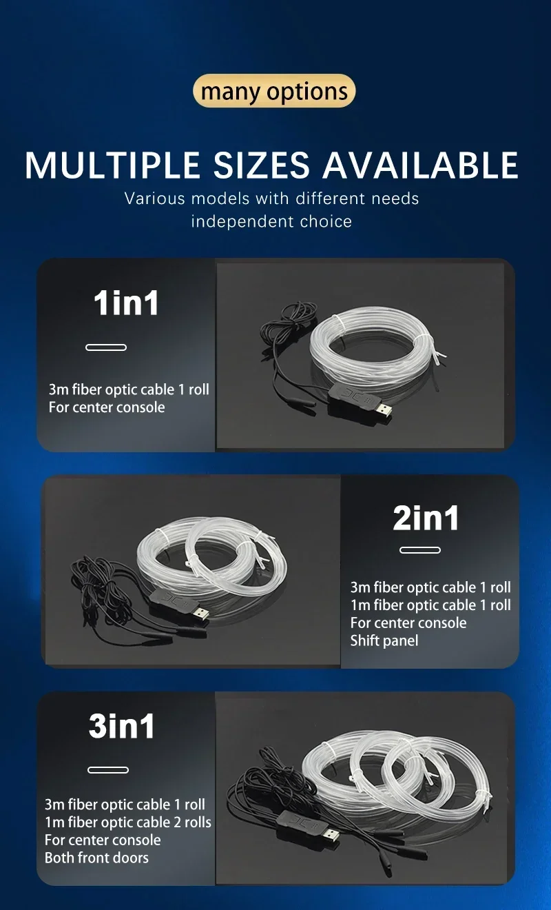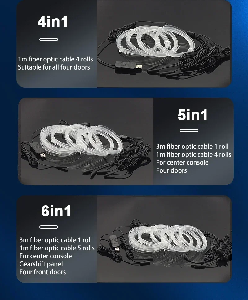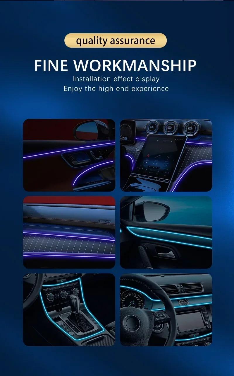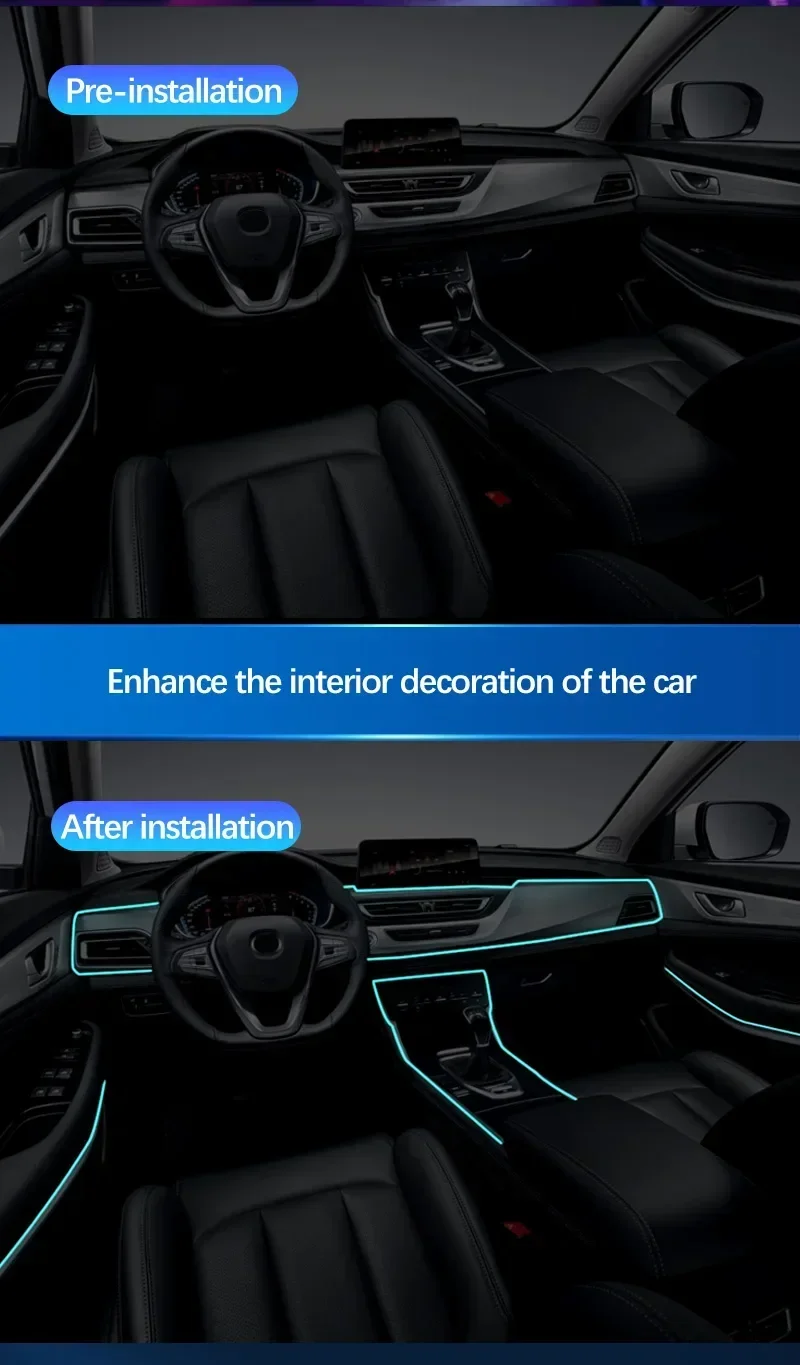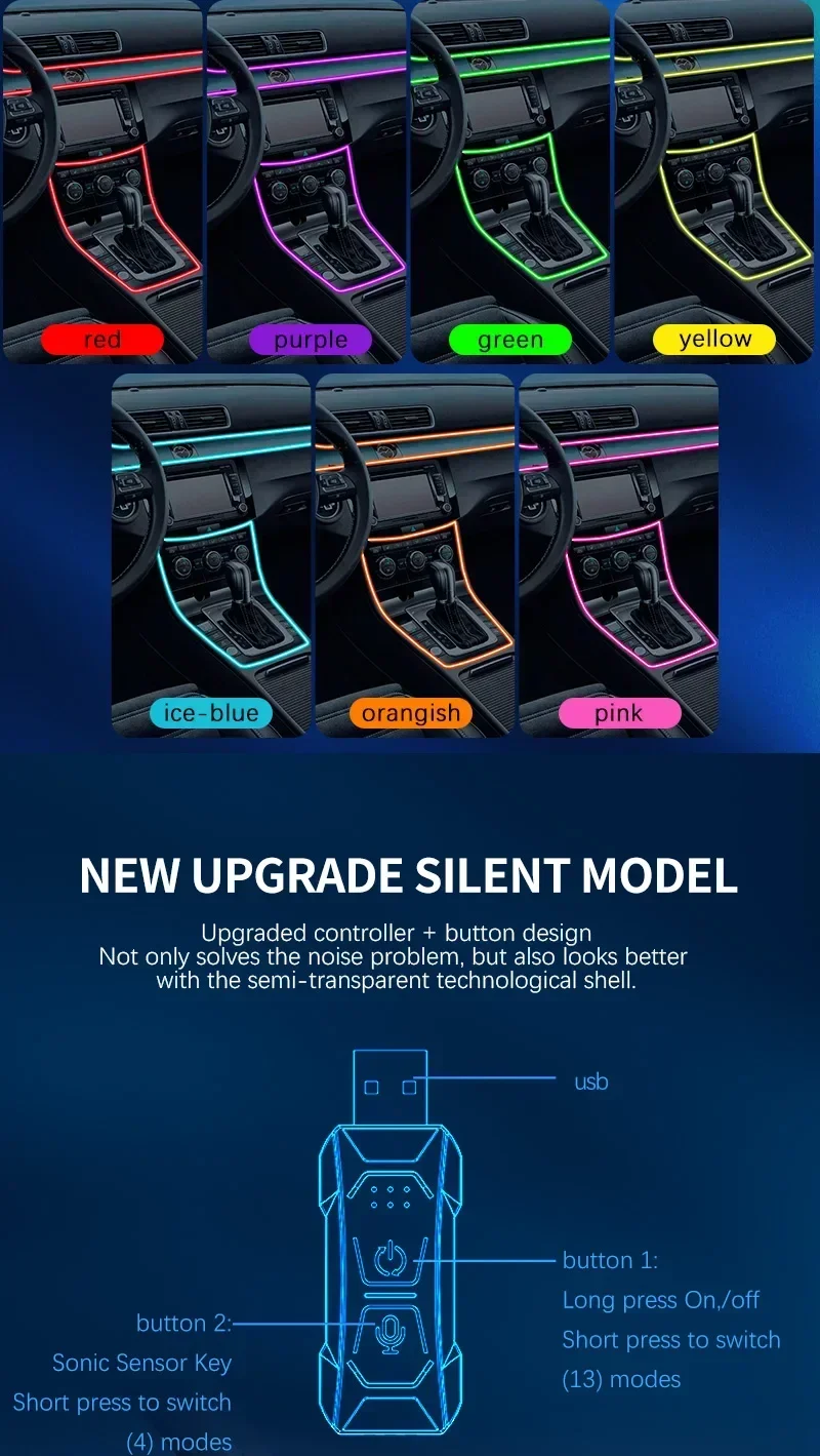 Car Interior RGB LED Atmosphere Light Strip USB Fiber Optic Neon Invisible Ambient Lamp Center Console Door Decoration Trim