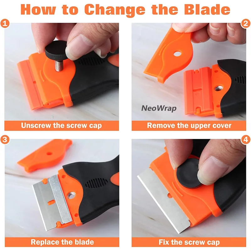 Razor Blade Scraper Tool: The TPR handle of the glass scraper are adopted ergonomic design, small and light enough to carry in a pocket. Can be used to remove decals, stickers, glue, labels, paint, Tint from windows, walls, cars, tiles, floors and glass. Also it can remove food residues on the ovens, kitchen cook tops, and glass top stoves.