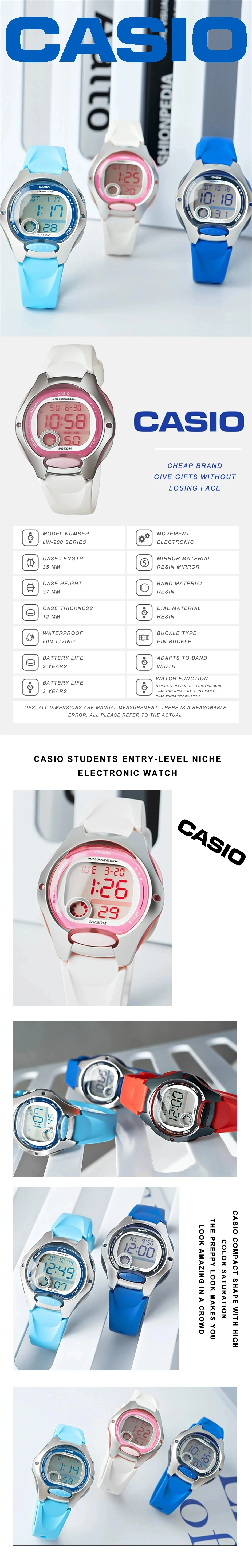 Casio LW-200 Sports Elementary School Girls Boys Cute South Korea Ins Wind Waterproof Digital Watch Stopwatch Calendar Display
