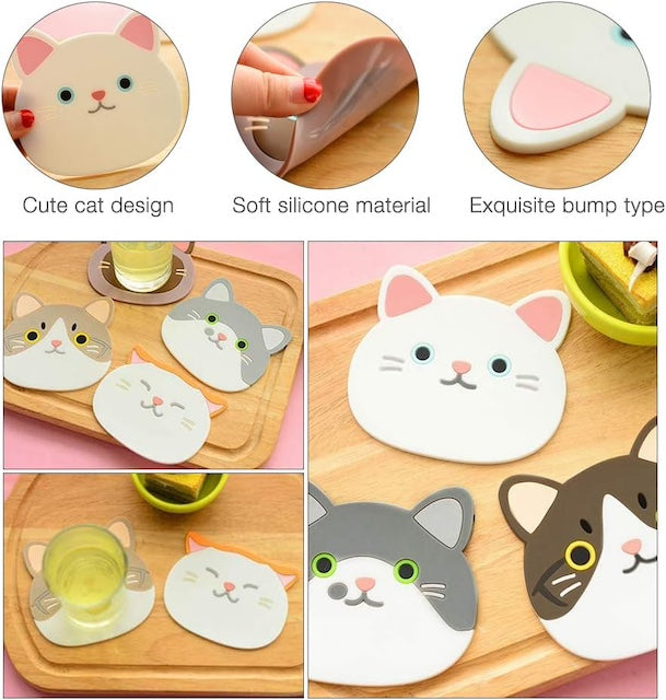 Cat Silicon Coaster, Decorative Cat Coasters, Cute Cartoon Cats Drink Coasters, Table Coasters for Wine, Glass, Tea, Drinks