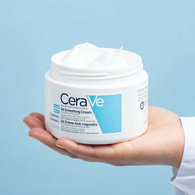 CeraVe SA Smoothing Cream 340G is a fragrance-free, rich moisturizer designed for the body. Developed with dermatologists, it targets rough and bumpy skin texture. It tackles a common concern: rough and bumpy skin texture. It achieves this through a two-pronged approach – gentle exfoliation and deep hydration – promoting smoother and healthier-looking skin. Whether you’re dealing with everyday dryness or a condition like keratosis pilaris, CeraVe SA Smoothing Cream can be a valuable addition to your skincare routine.