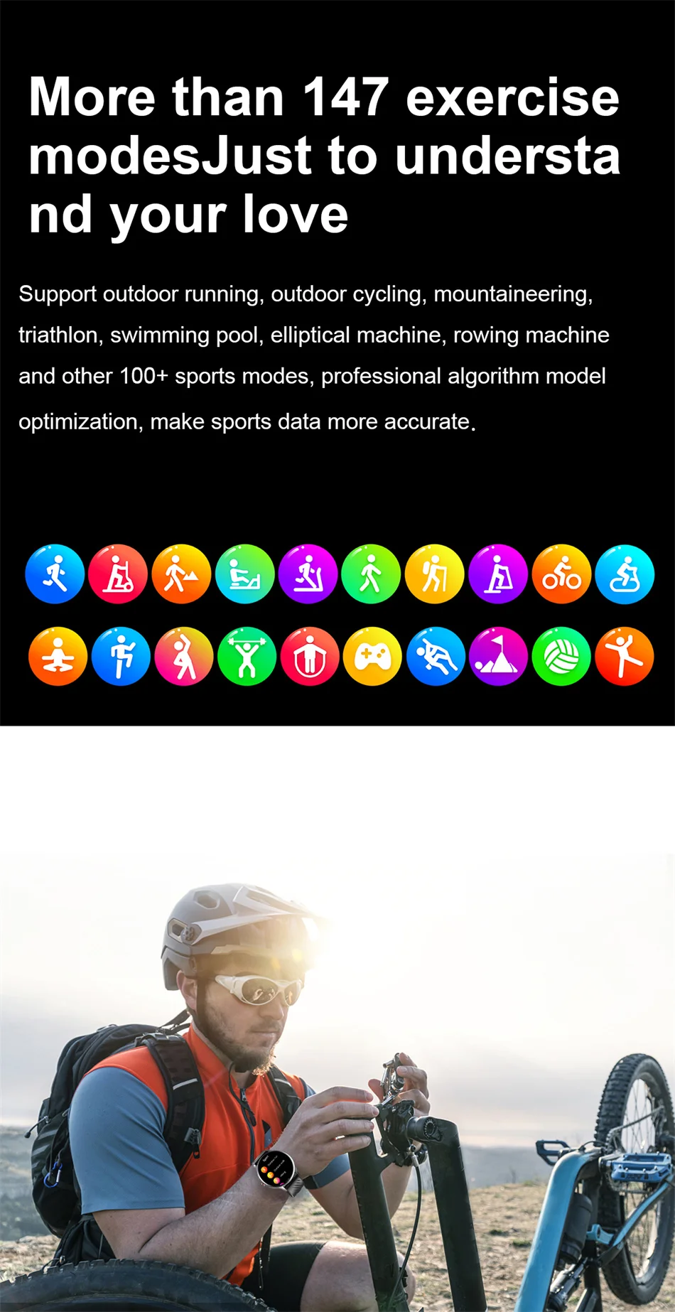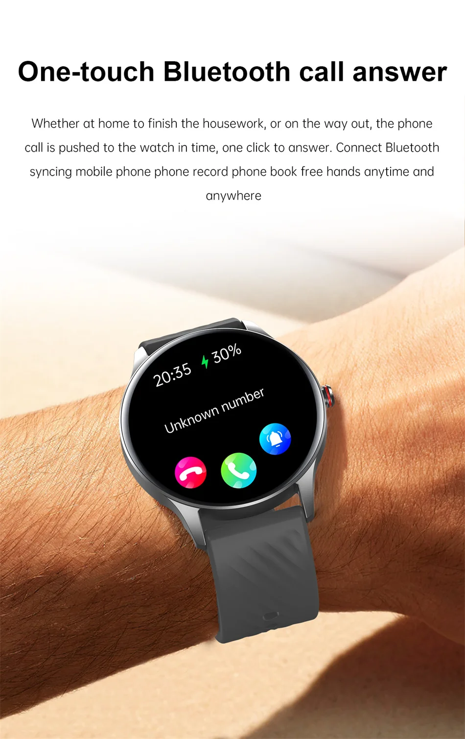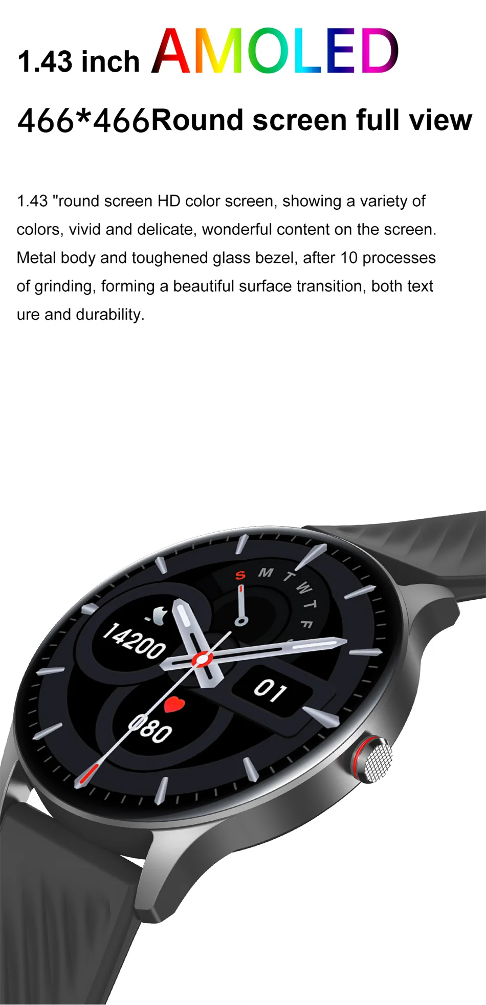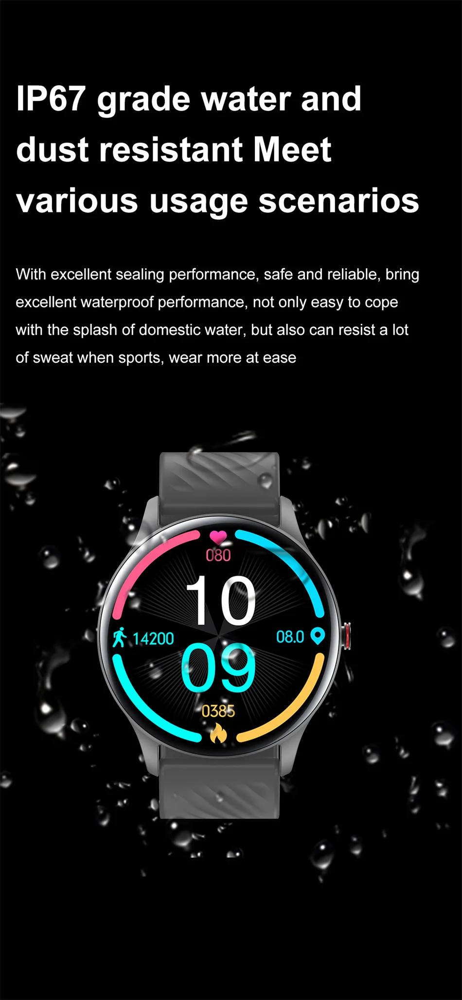 Main functions: Bluetooth call, non-invasive blood glucose measurement, HRV function (Lorentz scatter plot analysis), Maytag function, blood oxygen monitoring, respiratory training, stress monitoring, women's health (period tracking), heart rate monitoring, blood pressure monitoring, 24h REM rapid eye movement test sleep (support sporadic naps over 30 minutes), sedentary reminder and other health functions. Off screen long light clock display, information notification watch end quick setting switch