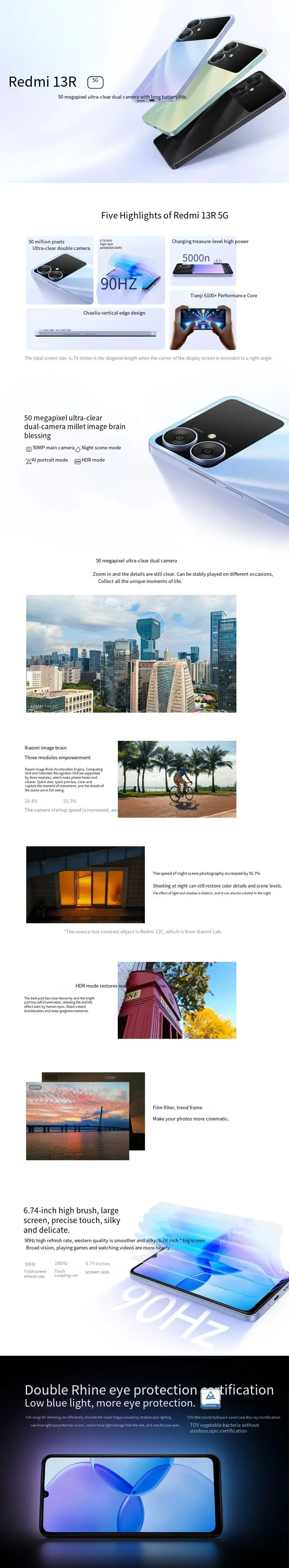 Chinese Version Redmi 13R 5G SmartPhone CPU MediaTek Dimensity 6100+ Battery Capacity 5000mAh 50MP Camera Original Used Phone