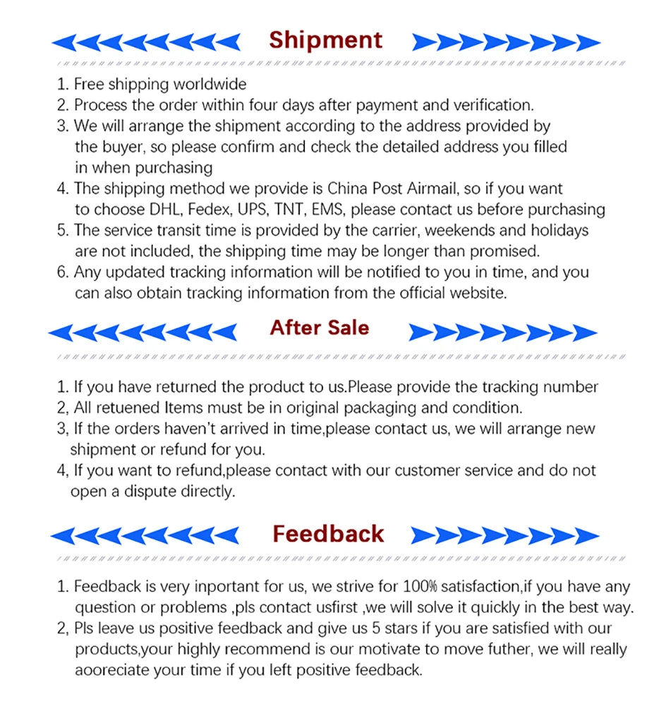 Shipping ways: Aliexpress shiping way/DHL UPS EMS TNT Fedex, E-packet, Chins Post