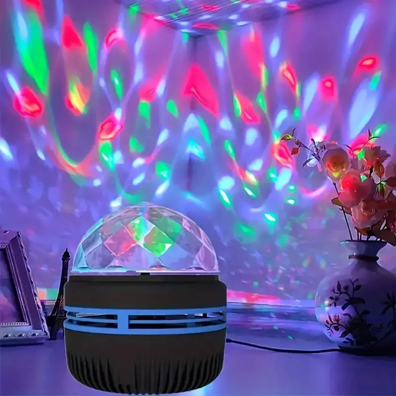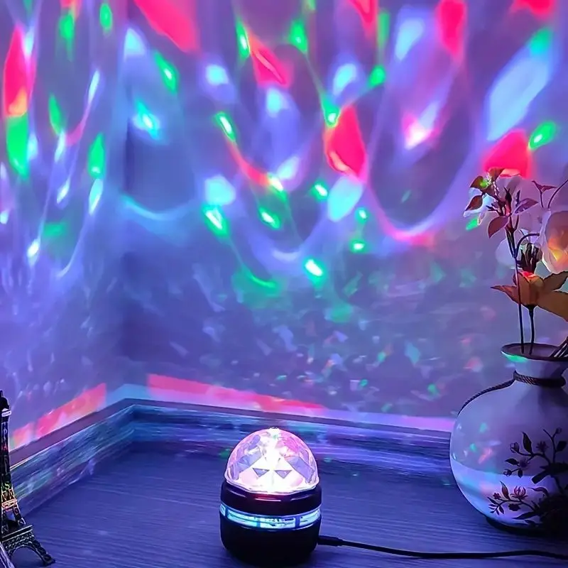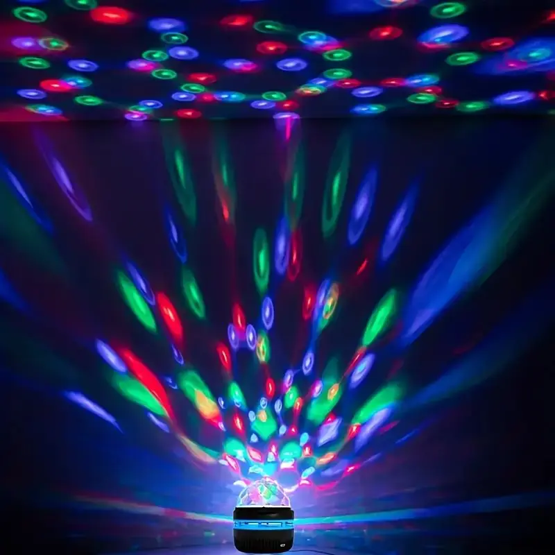 1.Strobe effect, with changes in red, green, and blue colors. Its light points are on the wall, and the effect is like a glass ball, very bright and powerful.