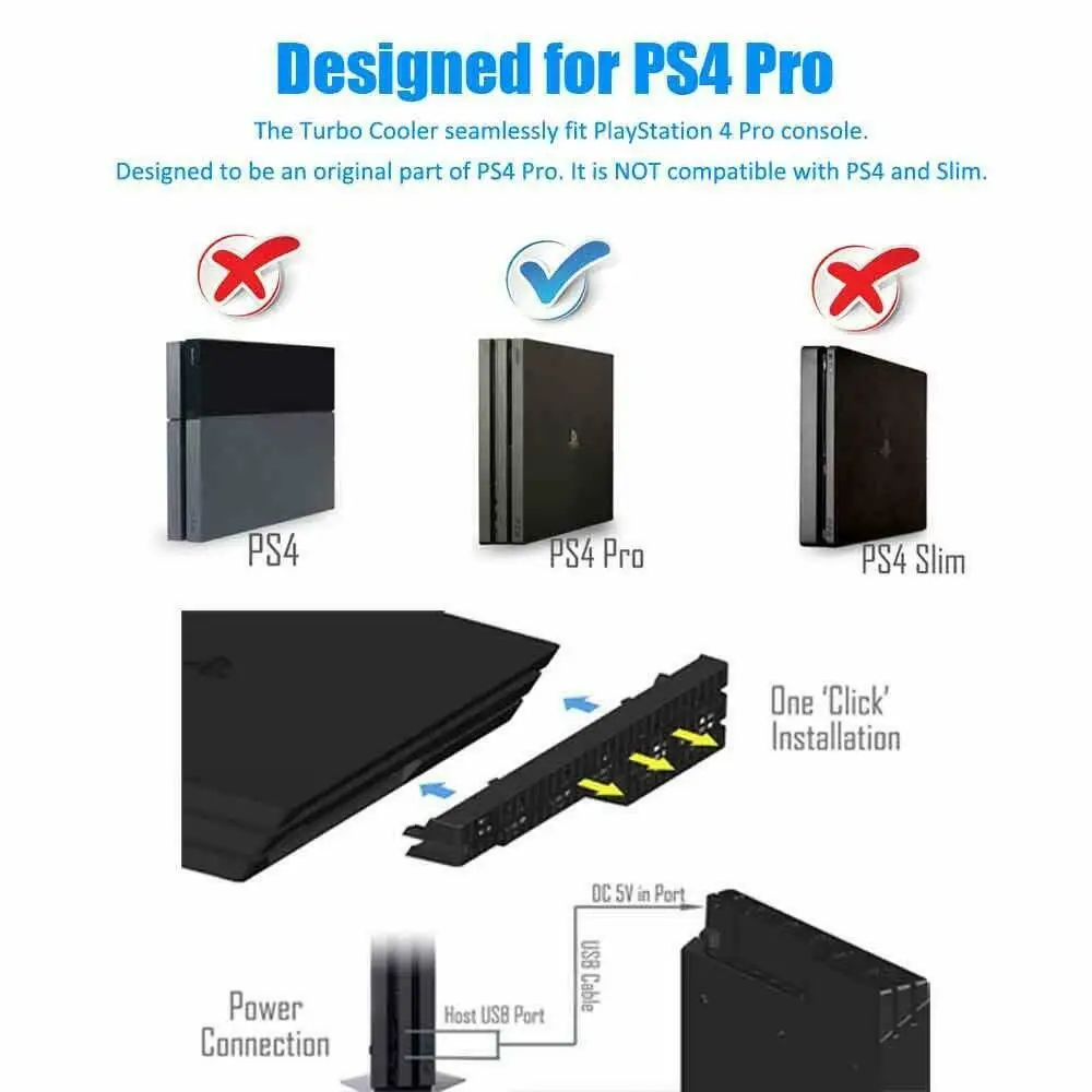 The Turbo Cooler seamlessly fit PlayStation 4 Pro console.