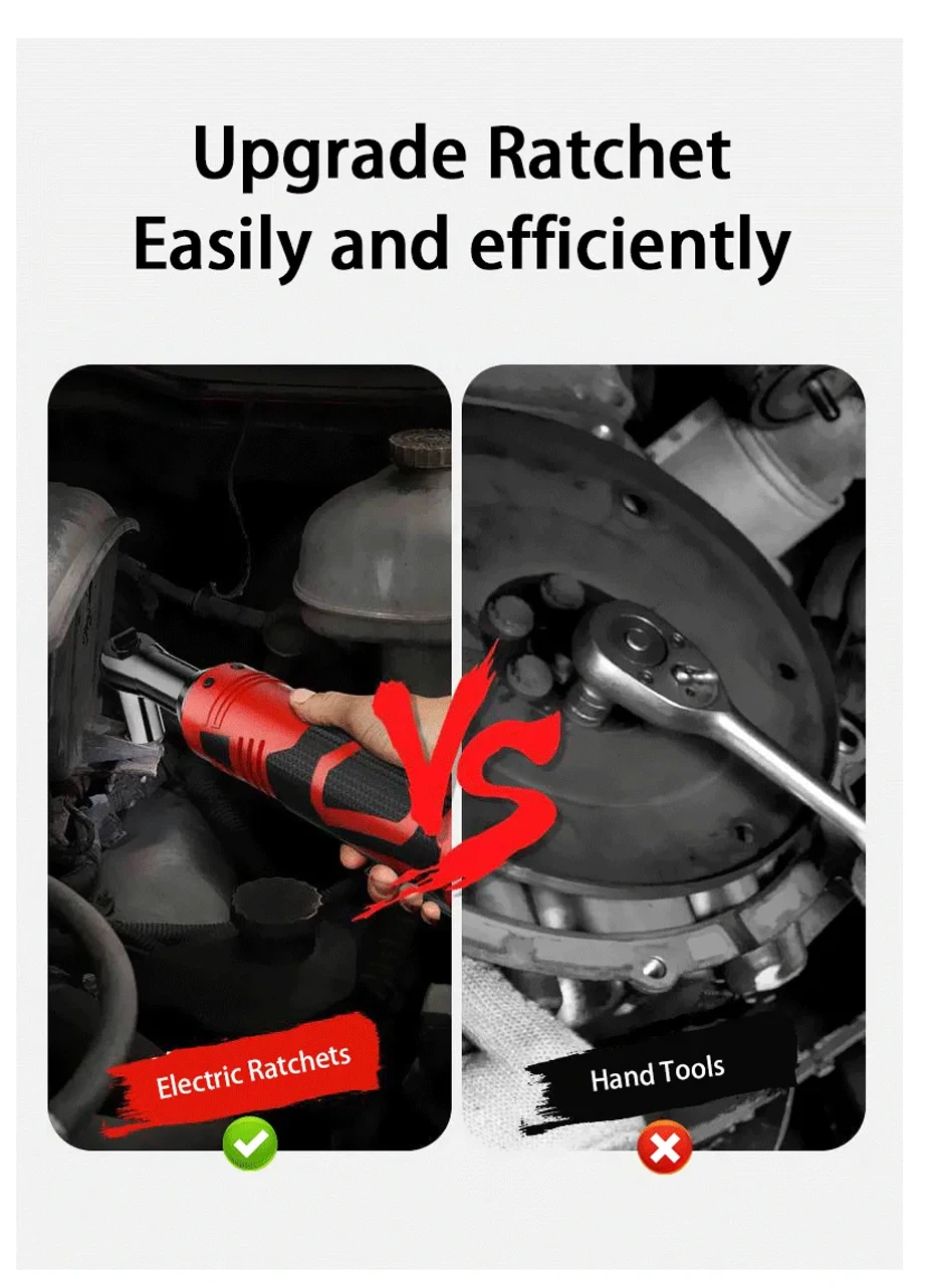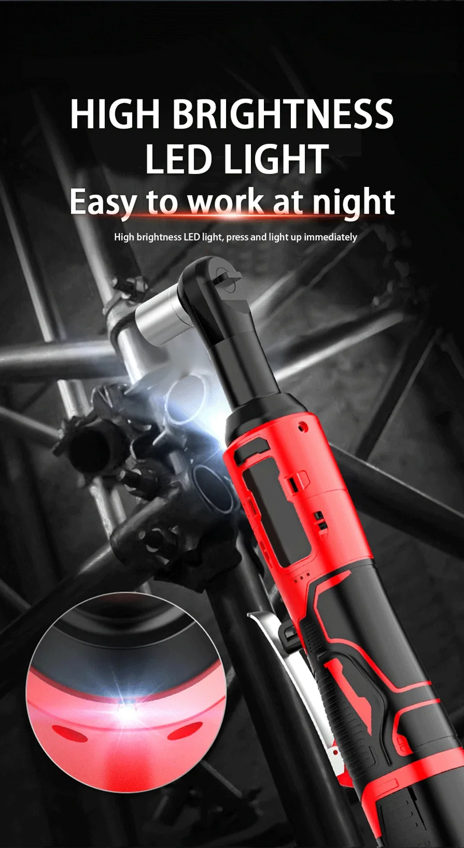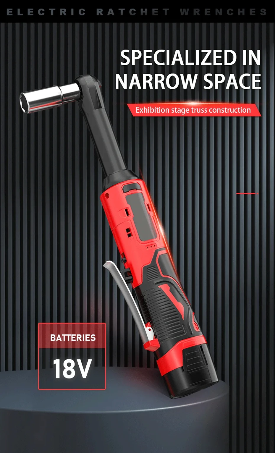 Cordless 90° Electric Ratchet Wrench with Extended Handle Long Reach Electric Ratchet Lithium-Ion Auto Repair Tool Set
