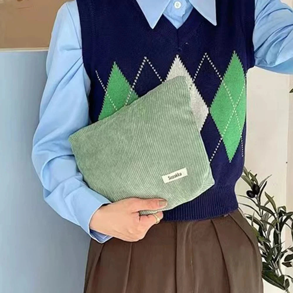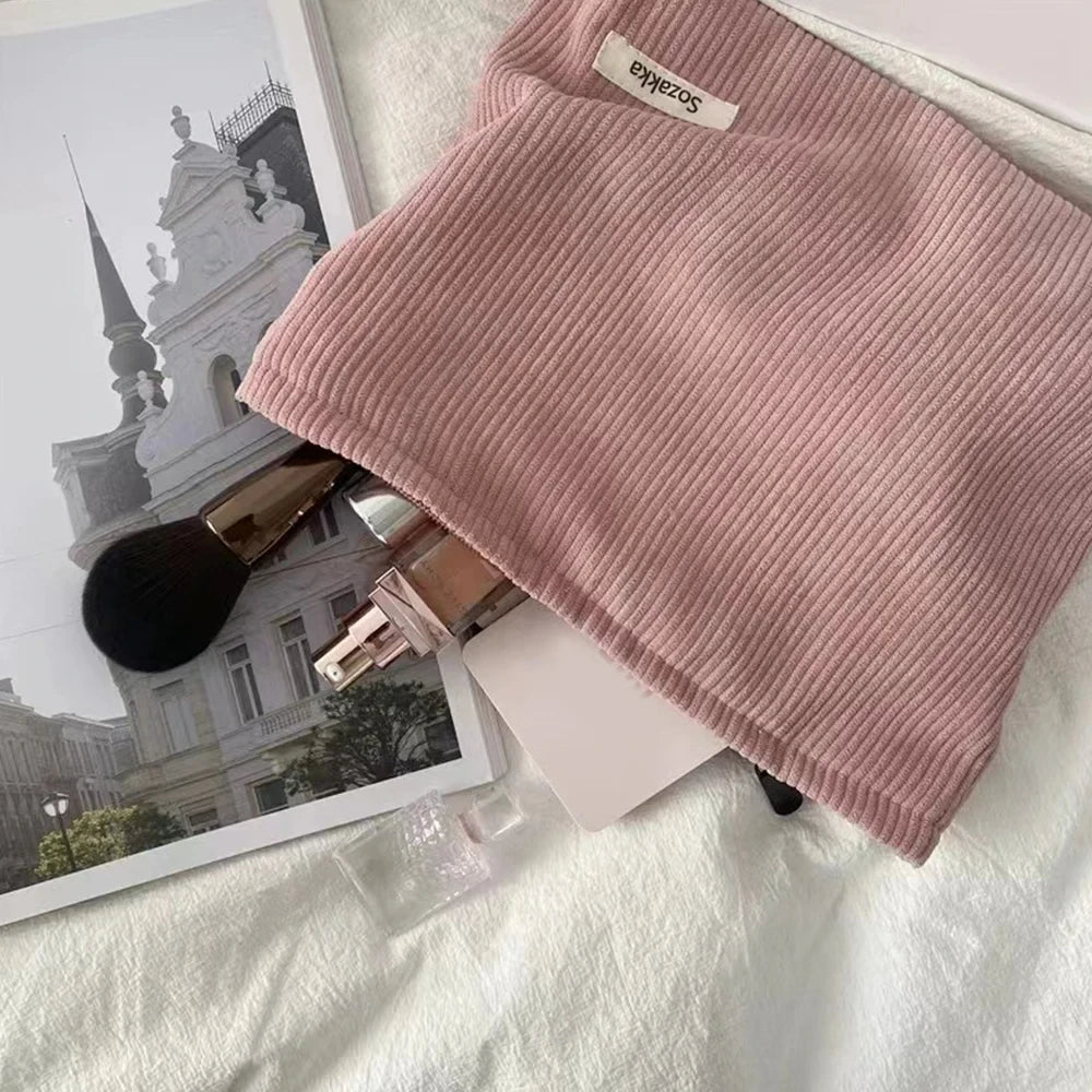 Corduroy Travel Cosmetic Bag Portable Makeup Storage Bag Purses Women Large Capacity Zipper Make Up Organizer Storage Clutch