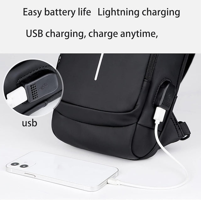 - This Leather Chest Bag Men's Motorcycle Bag USB Charging Backpack Business Single Shoulder Small Backpack Water Resistant Chest Diagonal Bag is a backpack specially designed for business commuters.