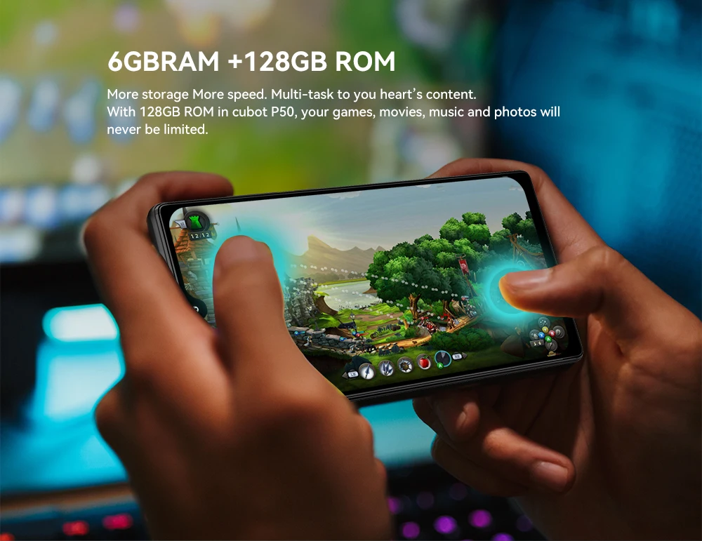 With 128GB ROM in Cubot P50, your games, movies, music, and photos will never be limited.