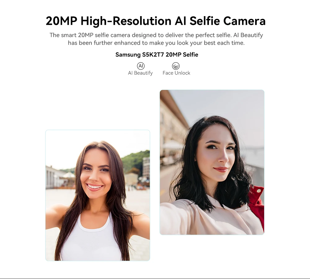 The smart 20MP selfie camera is designed to deliver the perfect selfie. AI Beautify has been further enhanced to make you look your best each time.