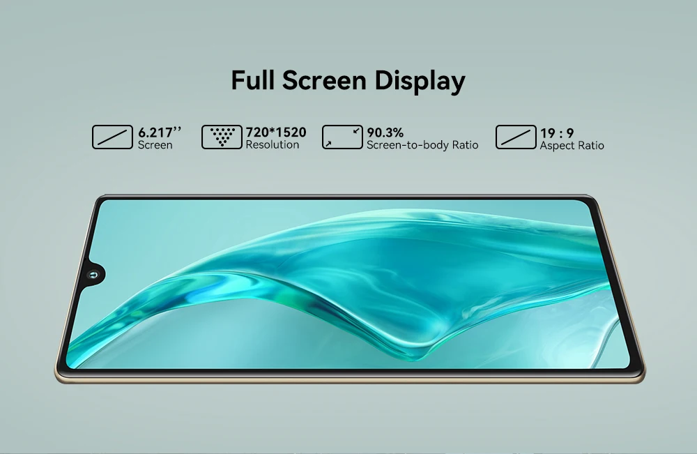 6.217" Screen , 720*1520 Resolution, 90.3% Screen-to-body Ratio, 19:9 Aspect Ratio