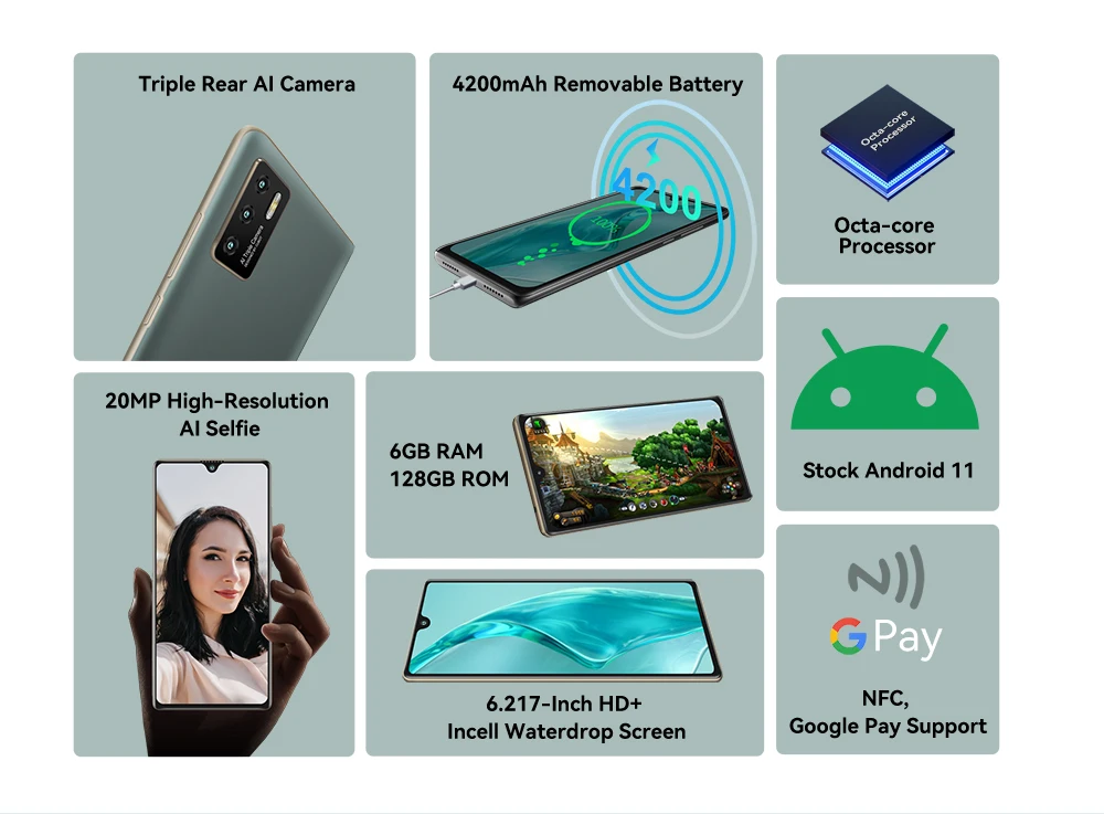 Cubot P50, Android Smartphone 6GB RAM 128GB ROM 4200mAh Battery 6.217" Screen NFC Cellphones 20MP Camera Mobile Phones Celular