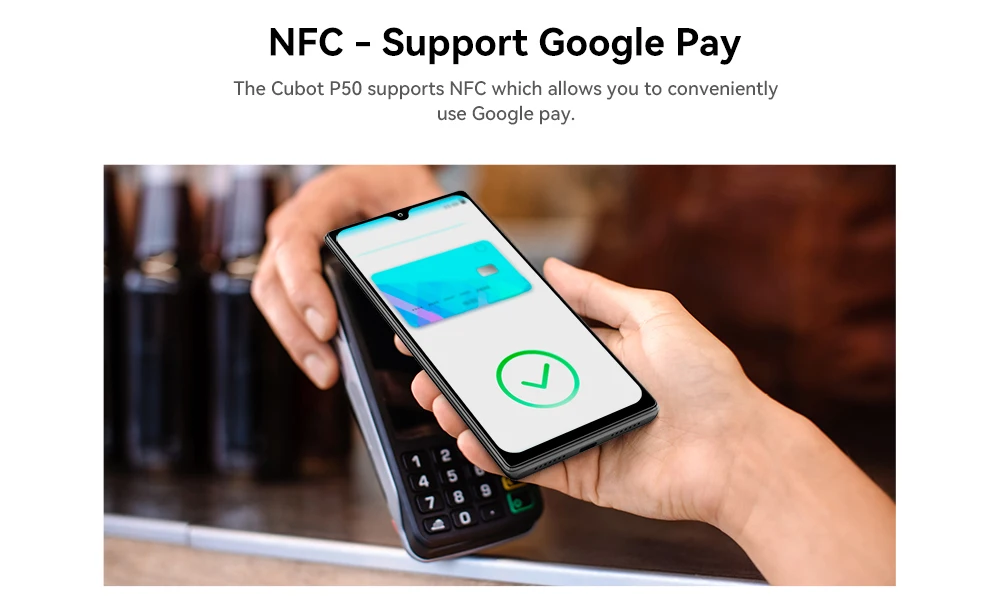 The Cubot P50 supports NFC which allows you to conveniently use Google pay.