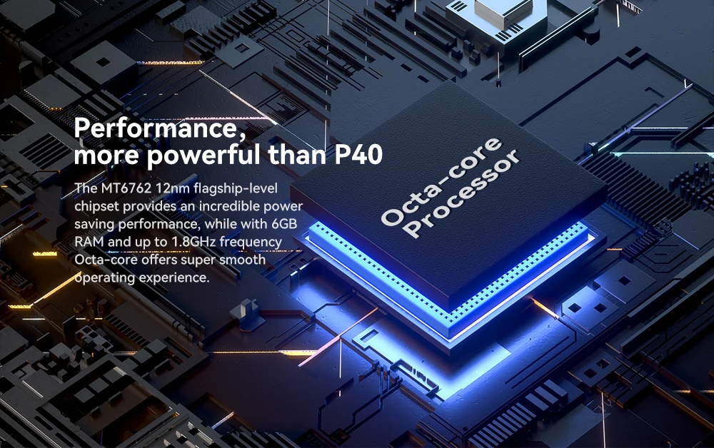 The MT6762 12nm flagship-level chipset provides an incredible power-saving performance, while with 6GB RAM and up to 1.8GHz frequency Octa-core offers a super smooth operating experience.
