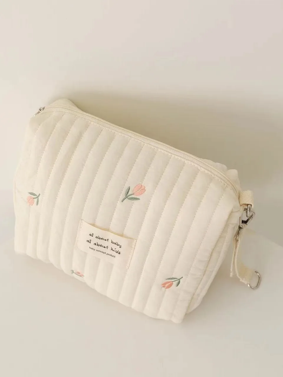 Cute printed embroidered mommy bag zipper single button newborn baby diaper storage bag travel cart storage bag