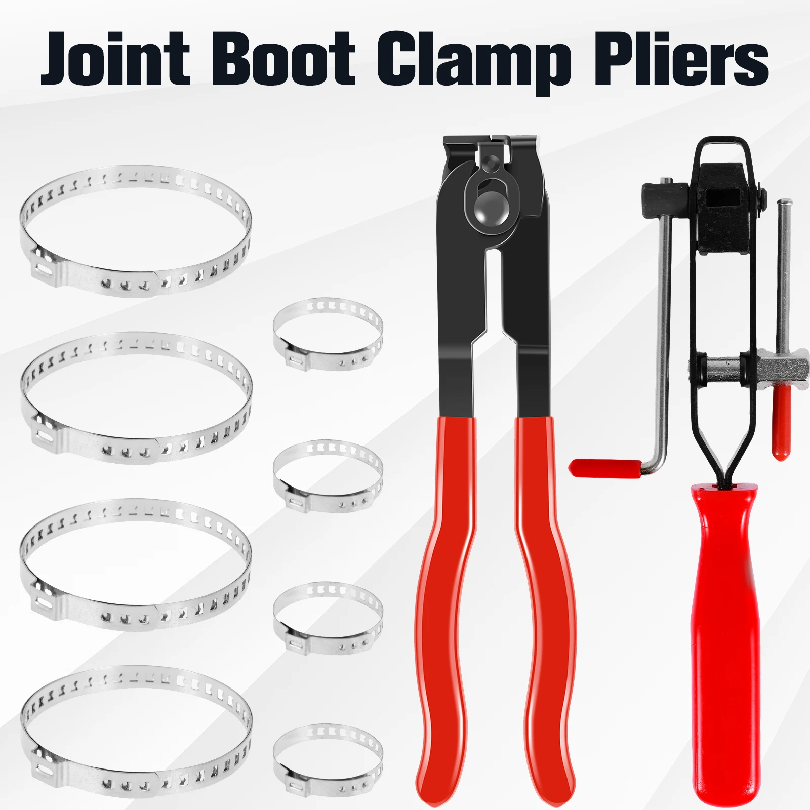 [Sturdy and Durable] CV Boot Clamp is made of high quality non-magnetic stainless steel, sturdy and durable. Pliers are made of pressed steel with black coating. Safe and durable. Set comes with 4 small CV boot clamps, 4 large CV boot clamps.