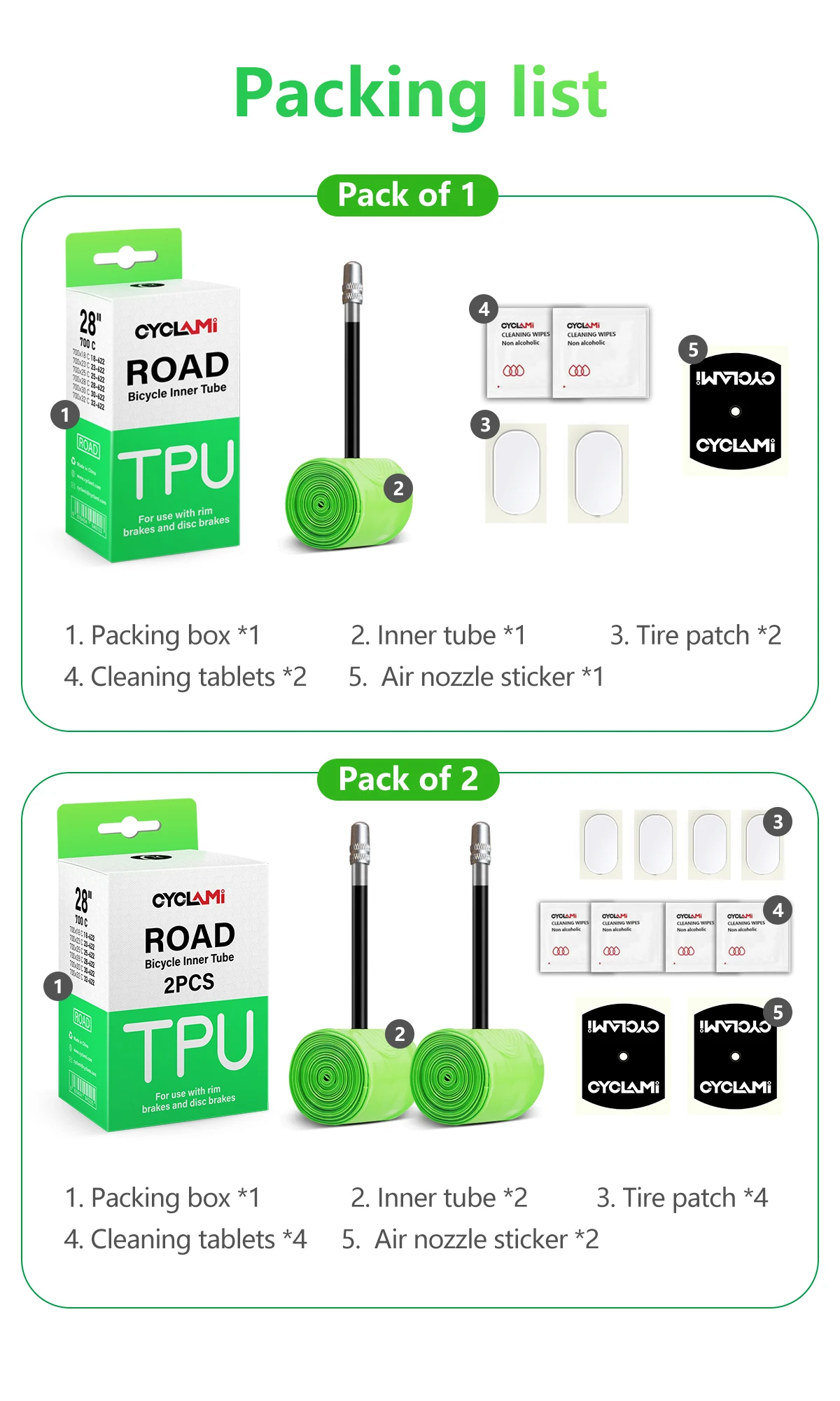 CYCLAMI TPU Material Ultralight Bike Inner Tube 700C 18 32 Road MTB Bicycle Tire 45 65 mm Length French Valve Tyre Repair Tools