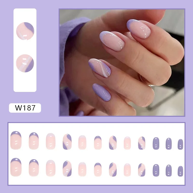 Dark Blue Cat Eyes 24 Pcs Press on Nails Pink Gradient Fake Nails Glossy Artificial Finger Manicure Reusable False Nails