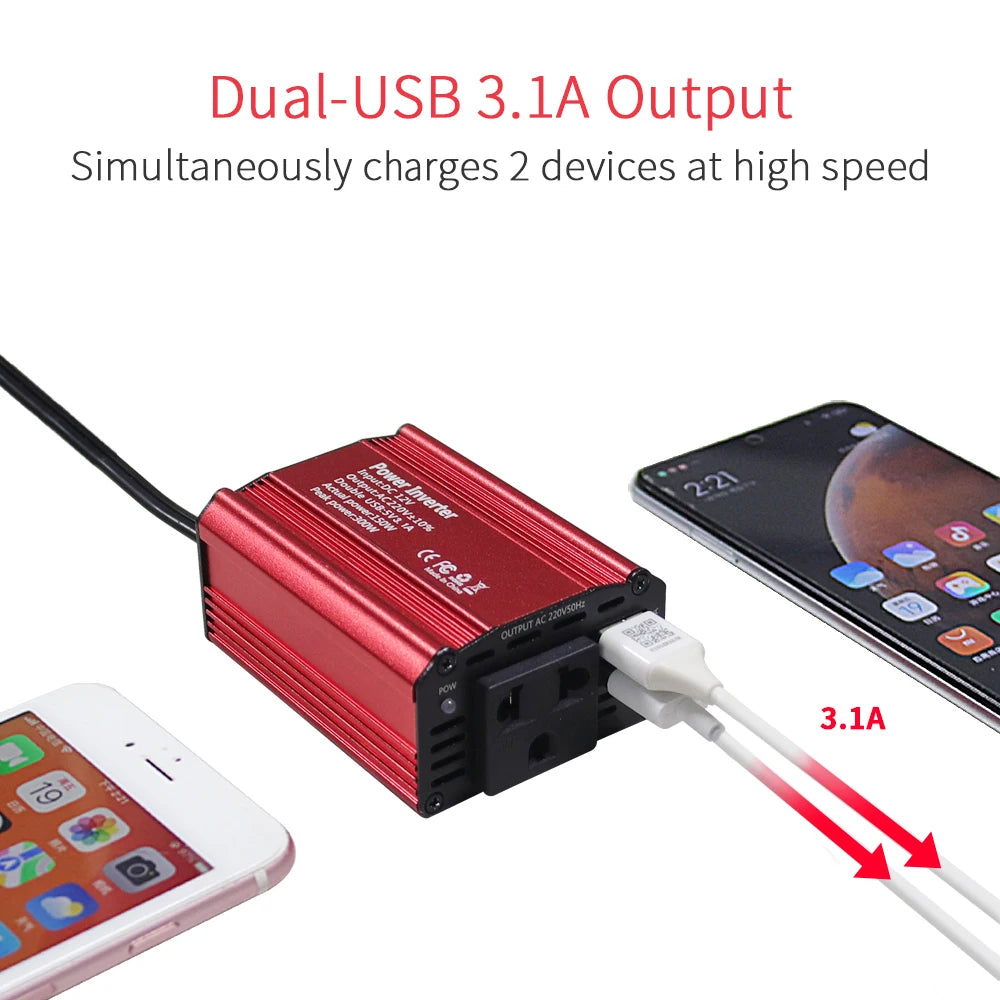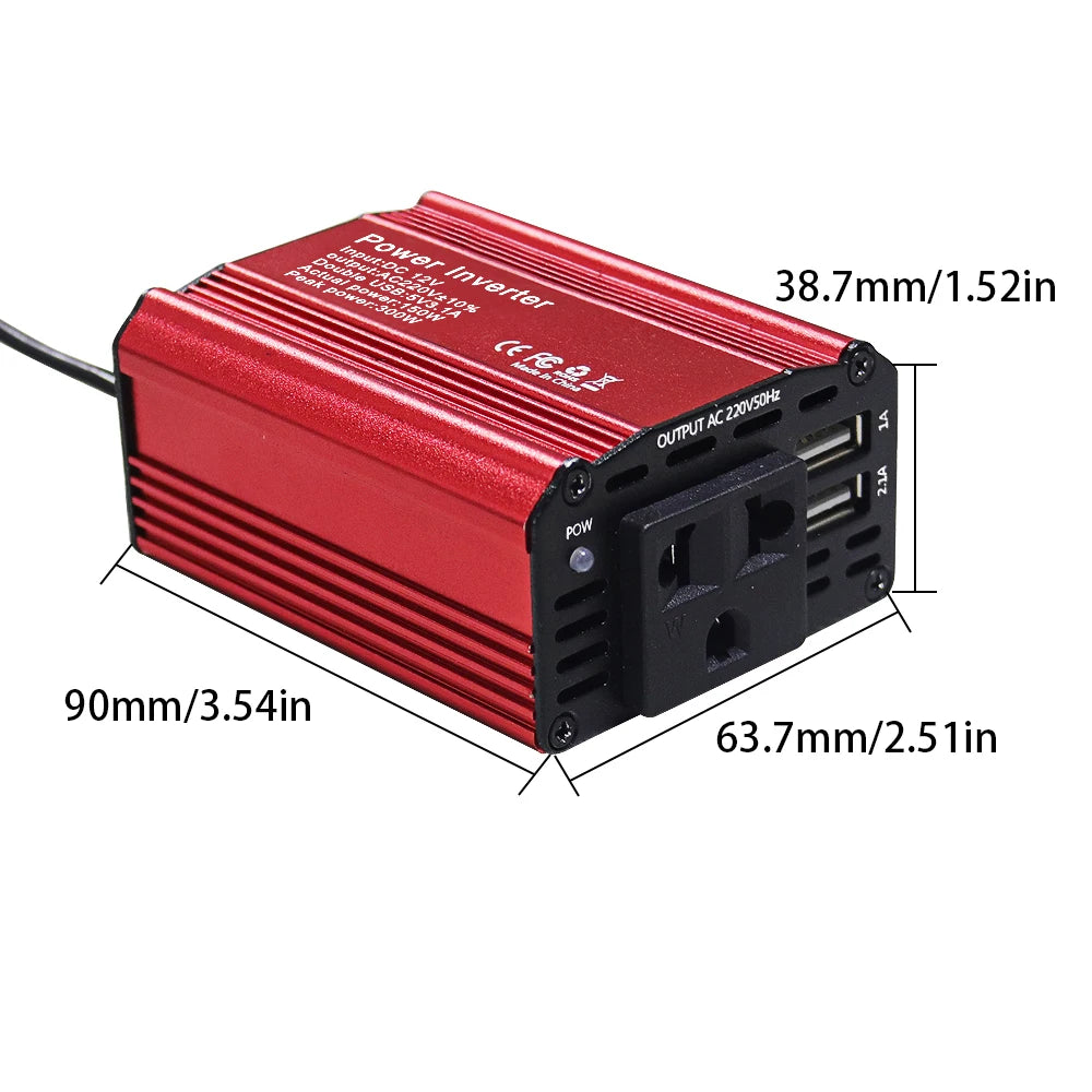 DC 12V to 220V AC Car Inverter 300W DC to AC Power Converter Automatic Transformer With EU Socket Dual USB Car Adapter Dropsh