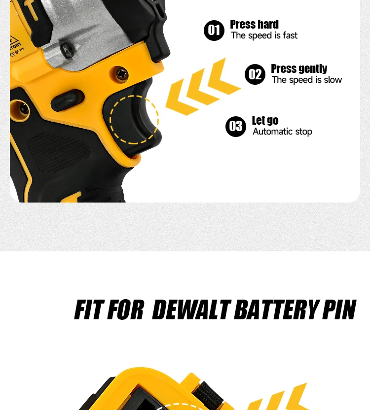 DCF921 Electric drill 406N.m Impact Wrench Brushless Electric Screwdrivers Impact driver Power Tools For Dewalt 20V Battery Pin