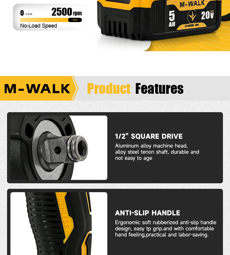 -The brushless motor does not generate sparks when it is working, and the motor does not wear.